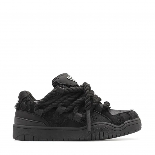 Чисто черные кеды - кроссовки с толстой шнуровкой для подростков