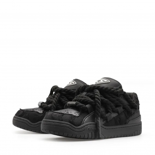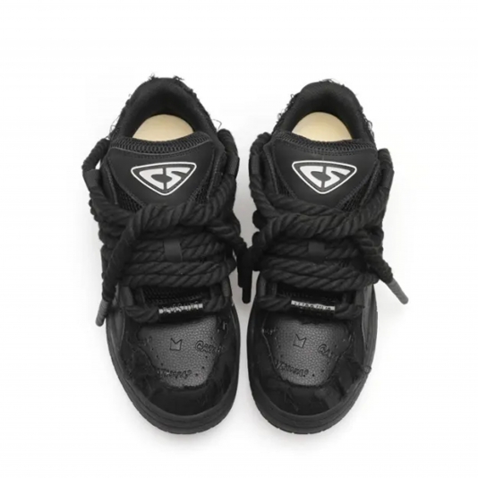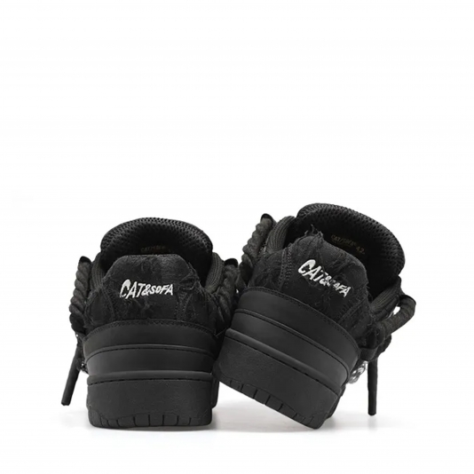 Грубые молодежные черные кроссовки - кеды с толстыми шнурками Cat & Sofa