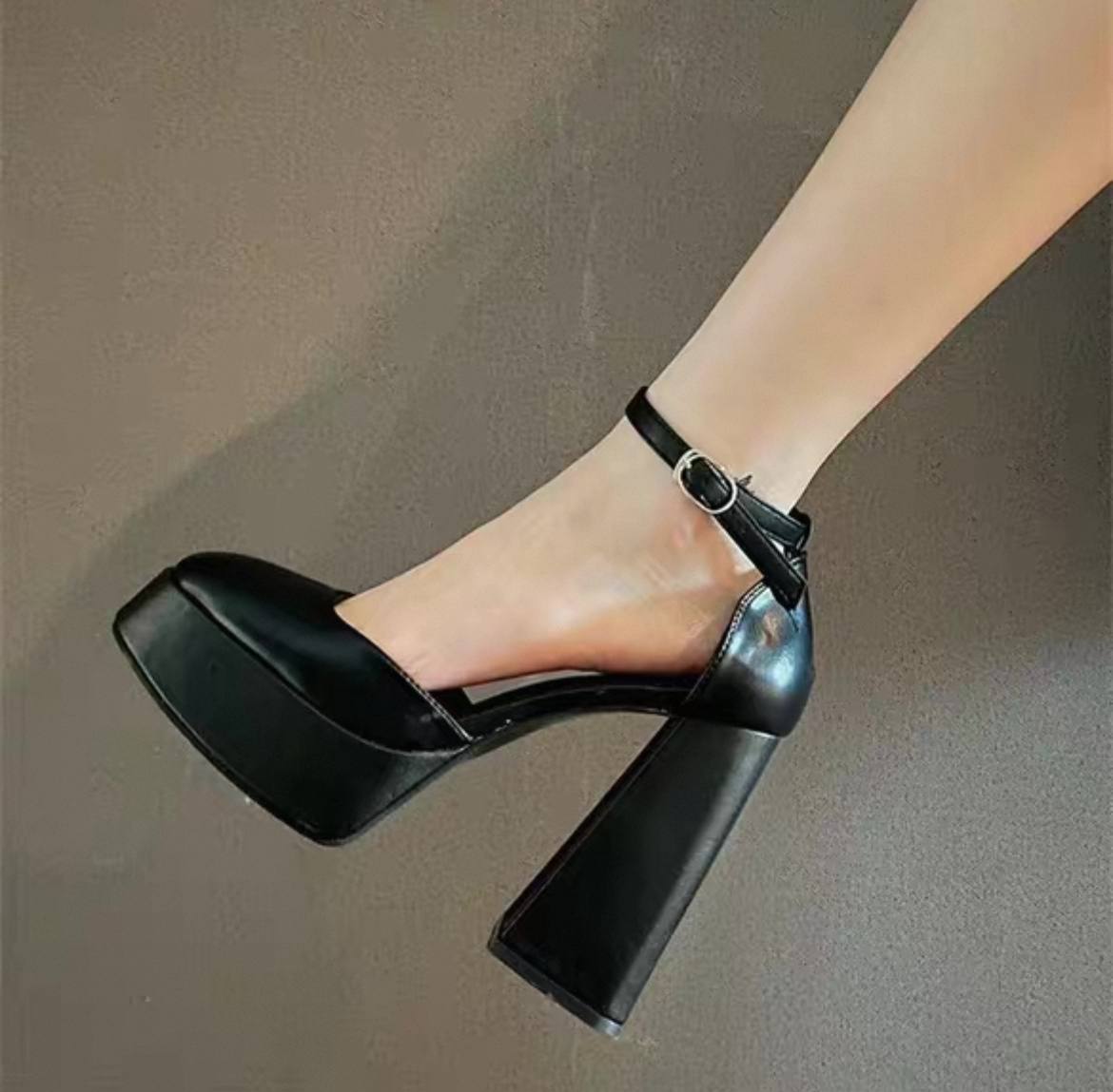 Закрытые нарядные босоножки в стиле Мэри Джейн на высоком квадратном каблуке