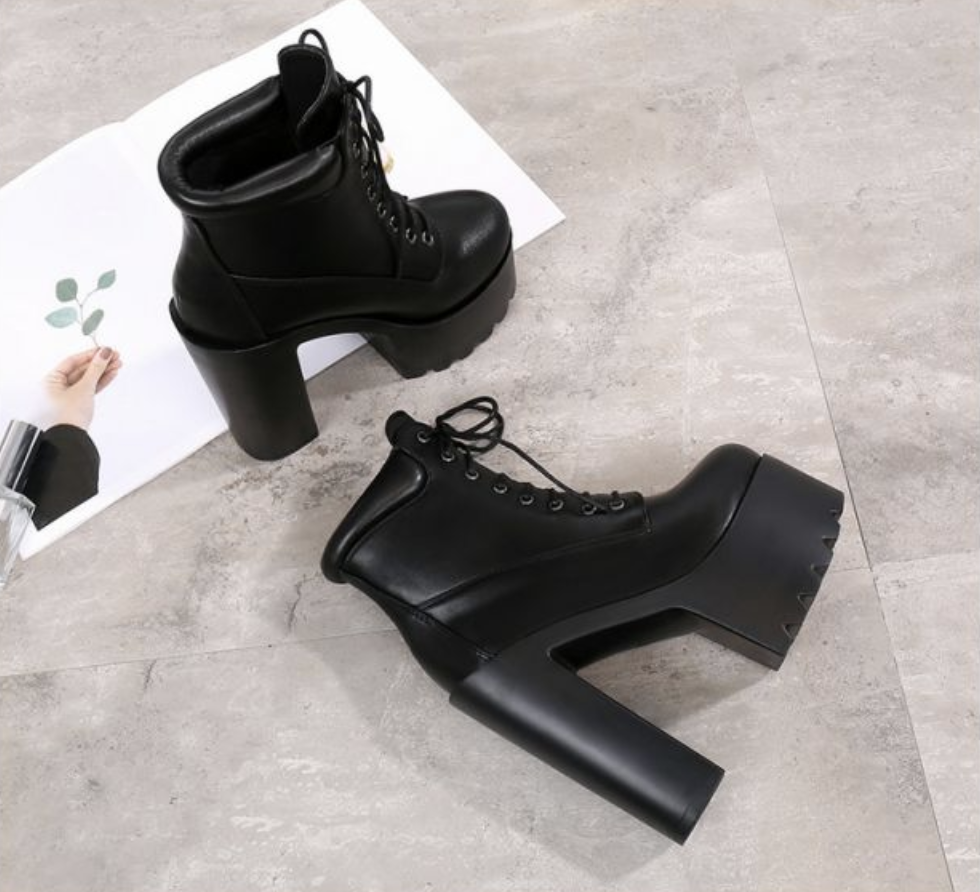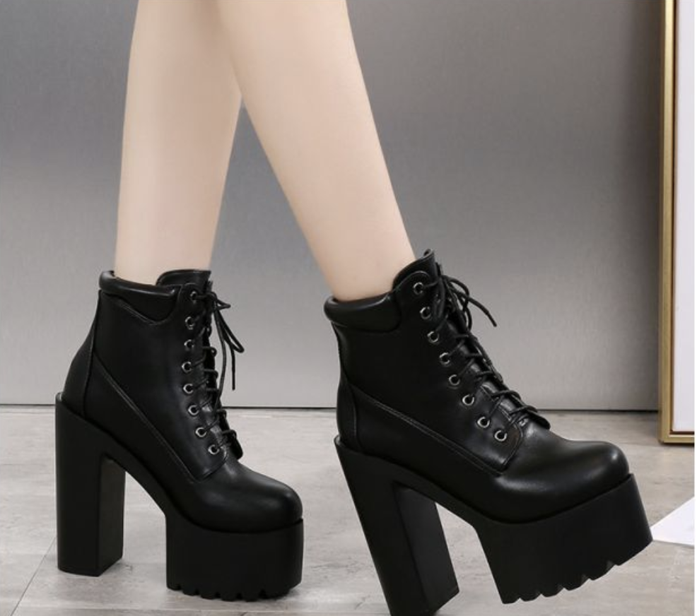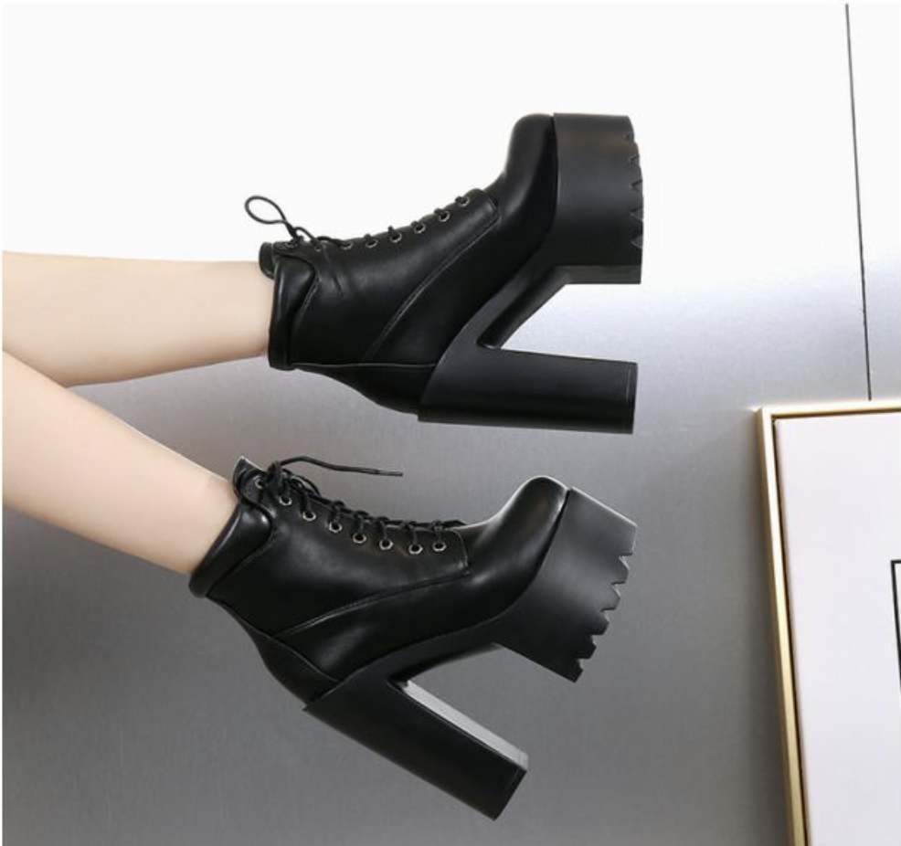 Высокие женские ботильоны на тракторной подошве