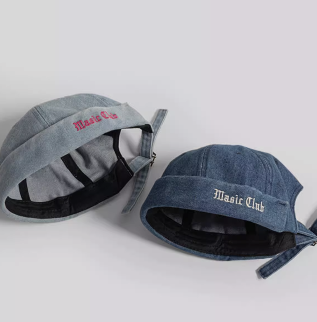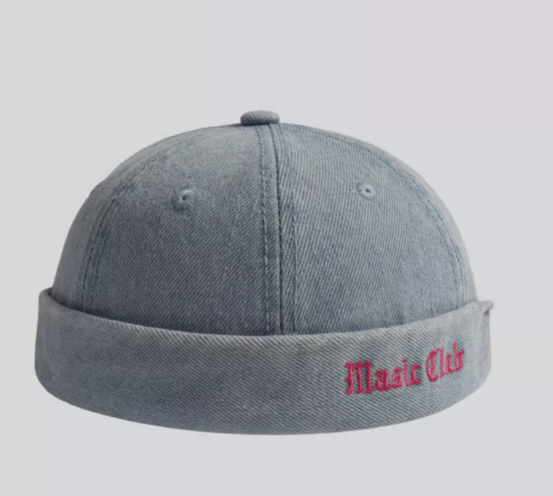 Джинсовая кепка без козырька с надписью