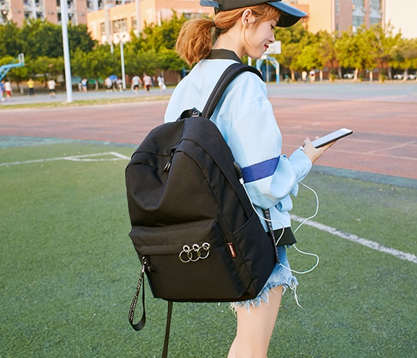 Черный рюкзак с металлическими пирсингом