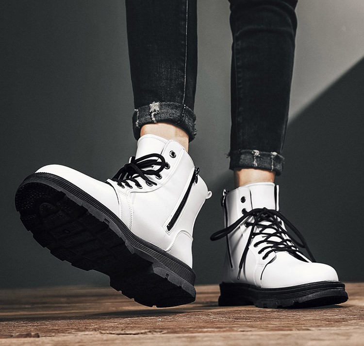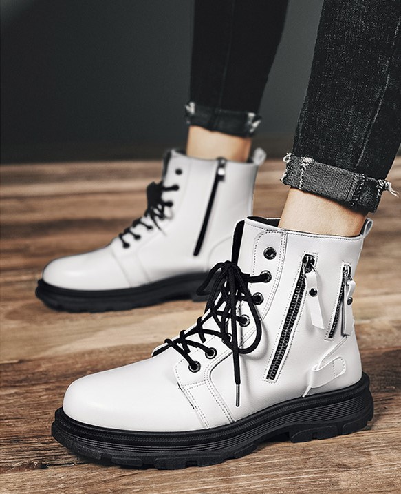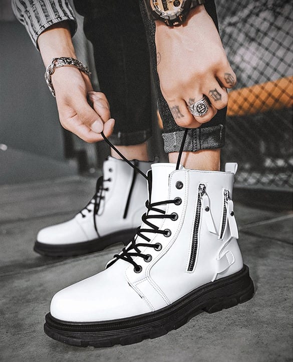 Мужские белые ботинки с молниями и шнурками