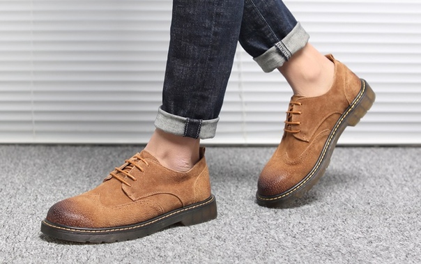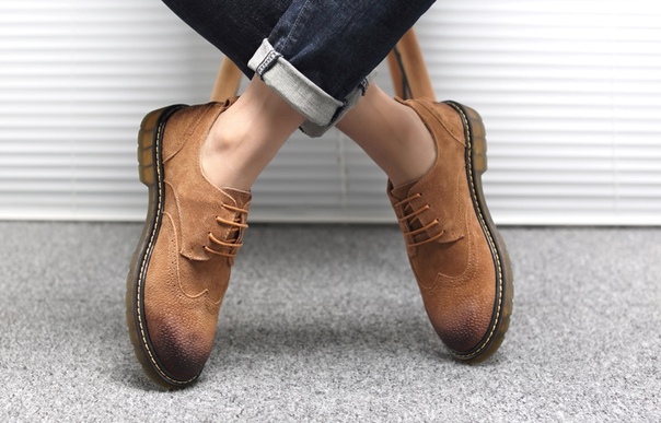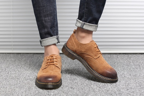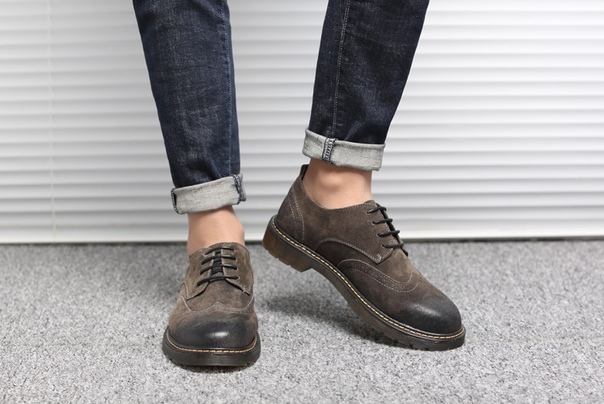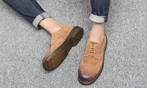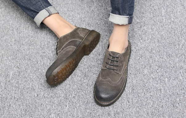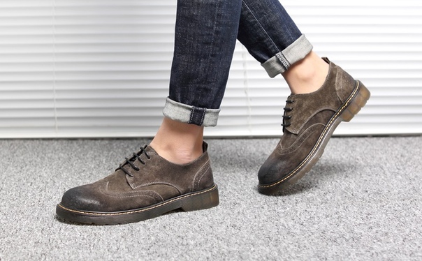 Грубые мужские туфли броги с потертостями