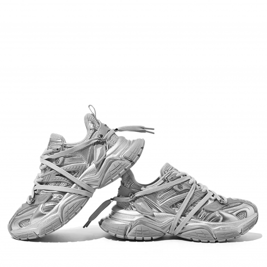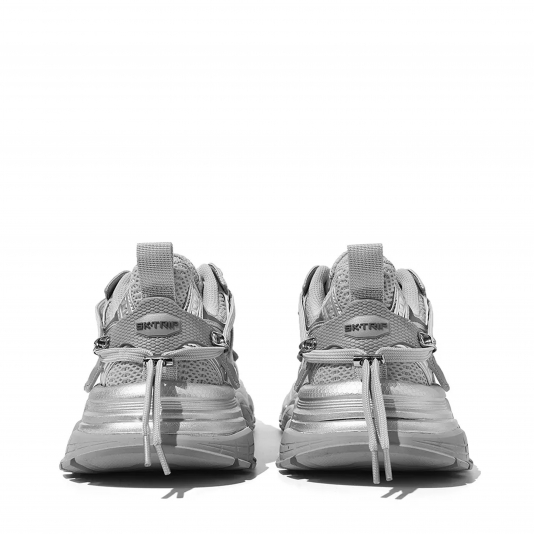 Парные массивные ретро кроссовки Sk trip Titanium Gray, цвет серебряный с необычной шнуровкой
