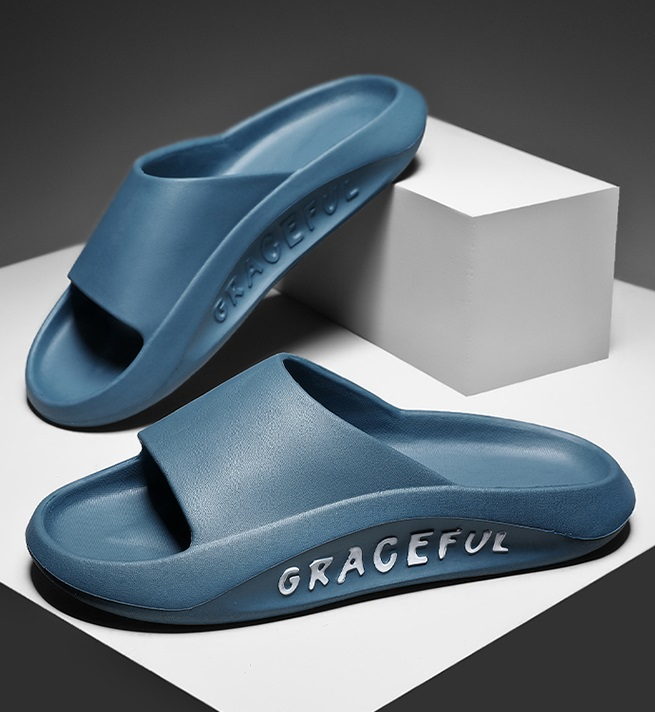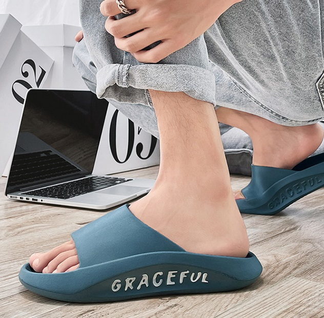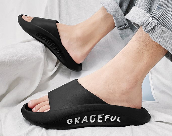 Мужские летние резиновые тапочки с надписью на подошве