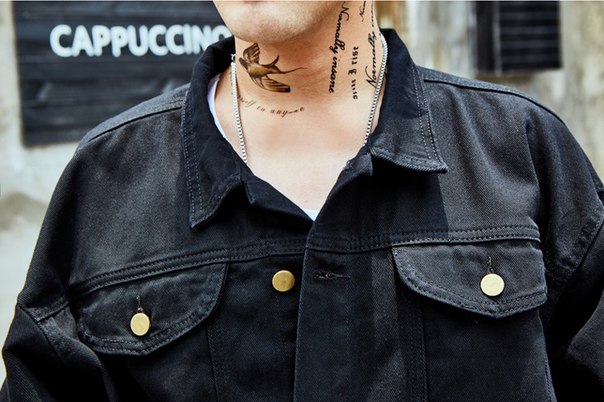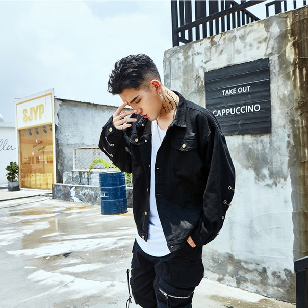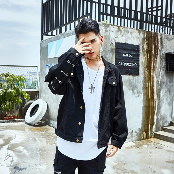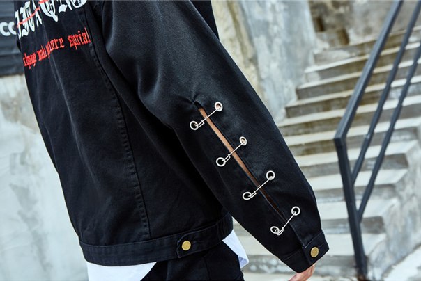 Джинсовая куртка с декоративными булавками на рукавах