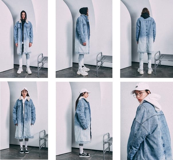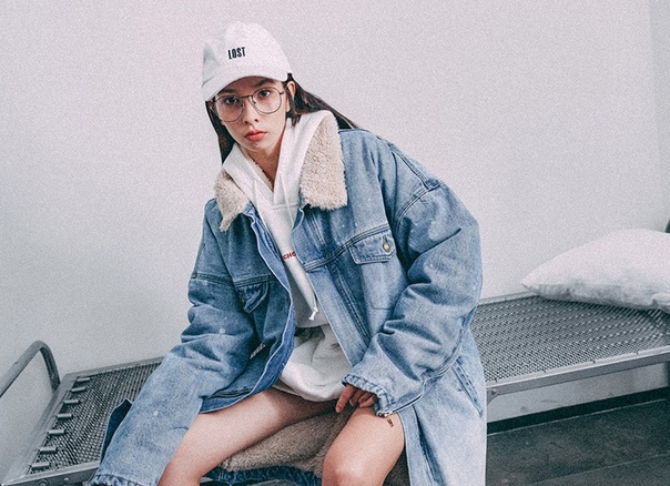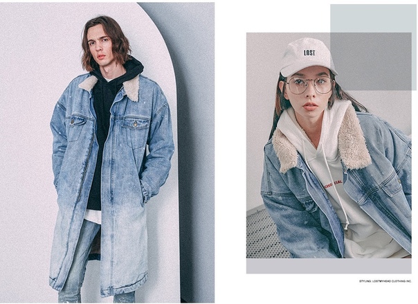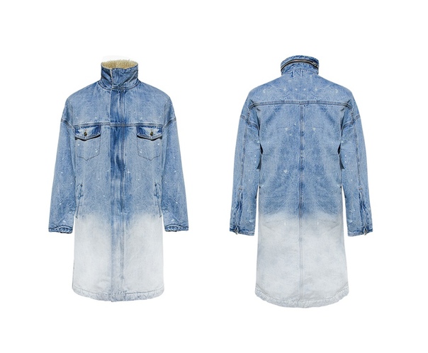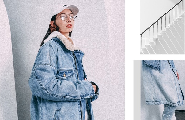 Светло синяя длинная джинсовая куртка на меху - зимняя