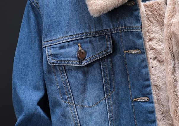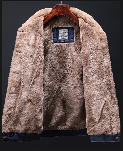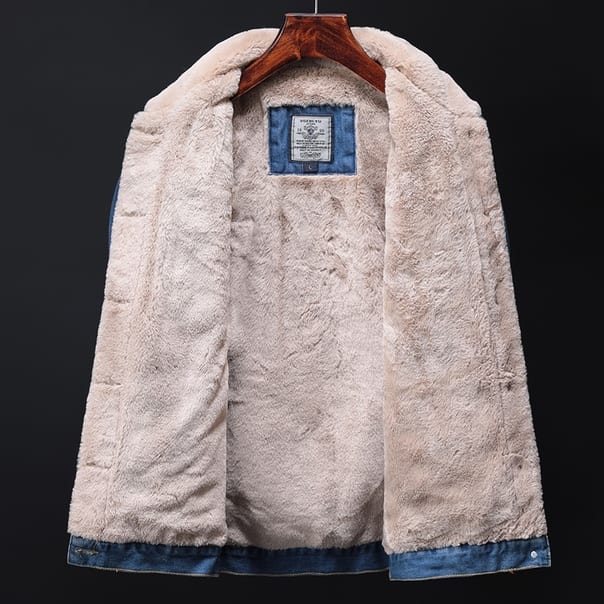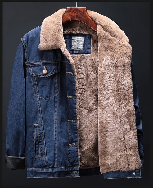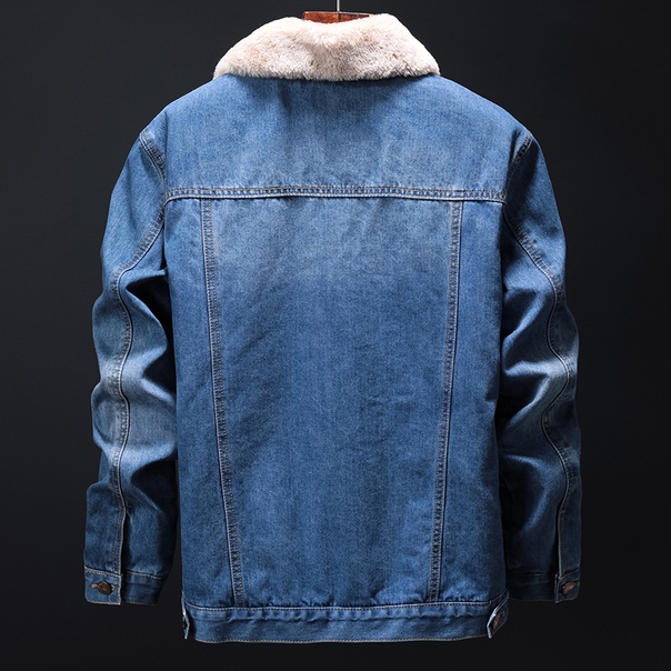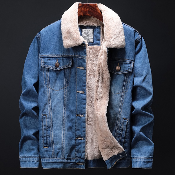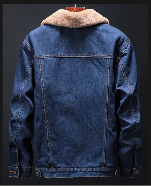 Зимняя джинсовая куртка с пышным теплым мехом - мужская