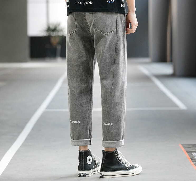 Прямые мужские джинсы с надписью сзади