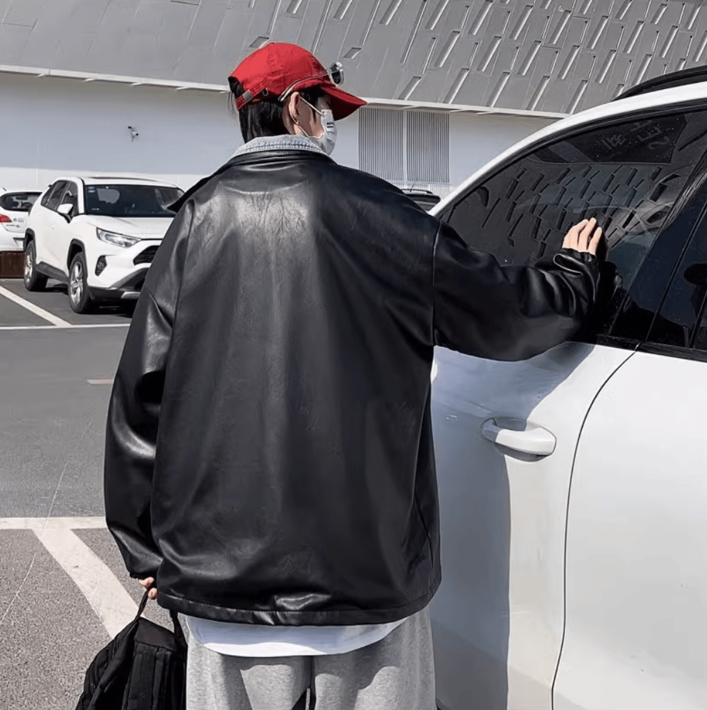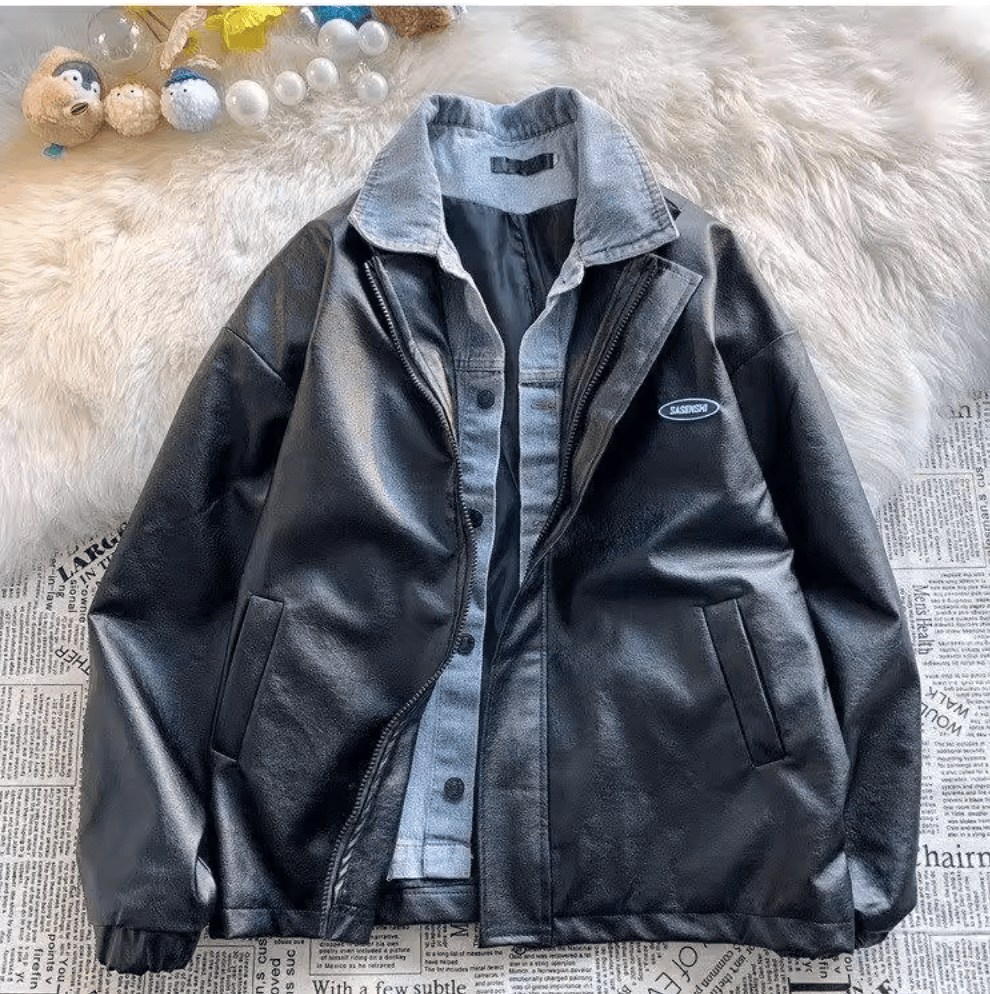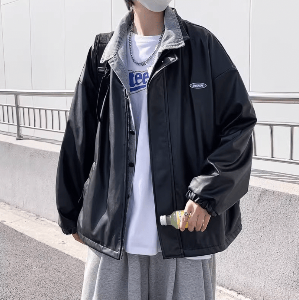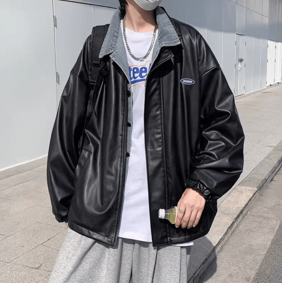 Мужская куртка прямая с эко кожи на молнии оверсайз