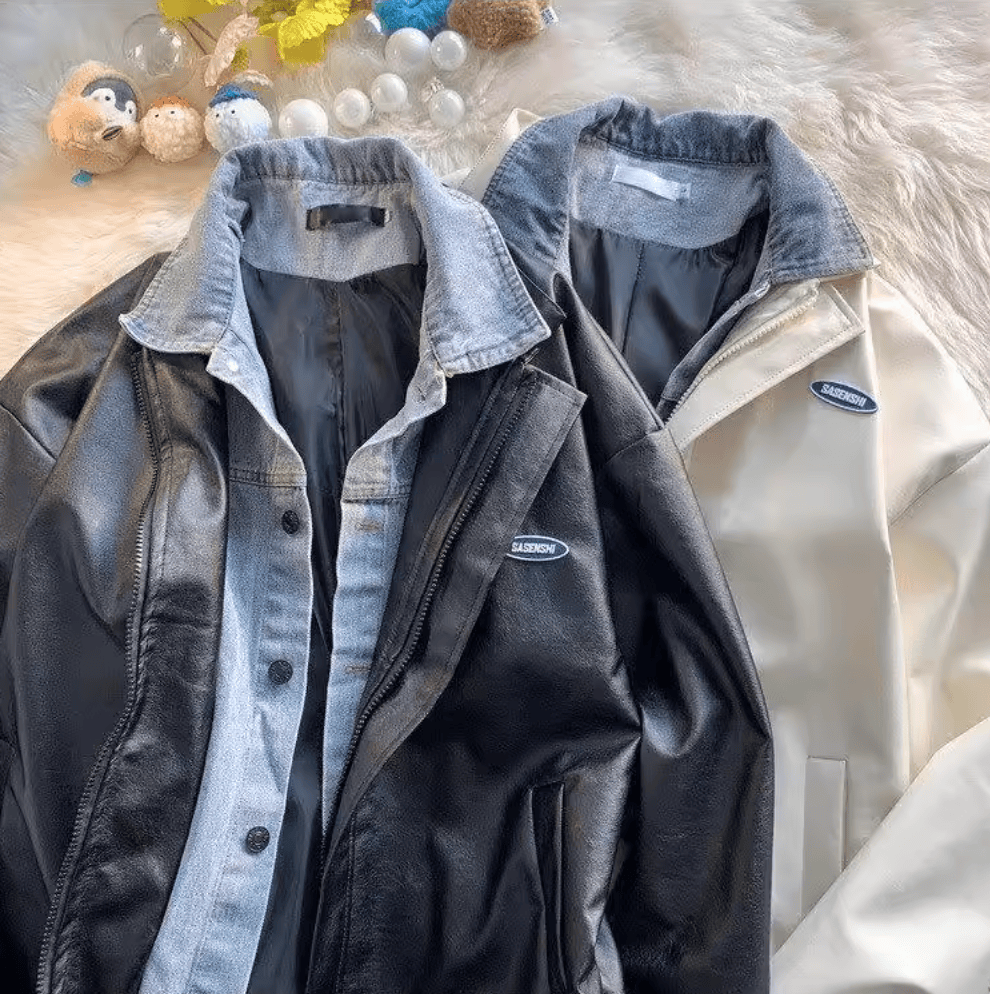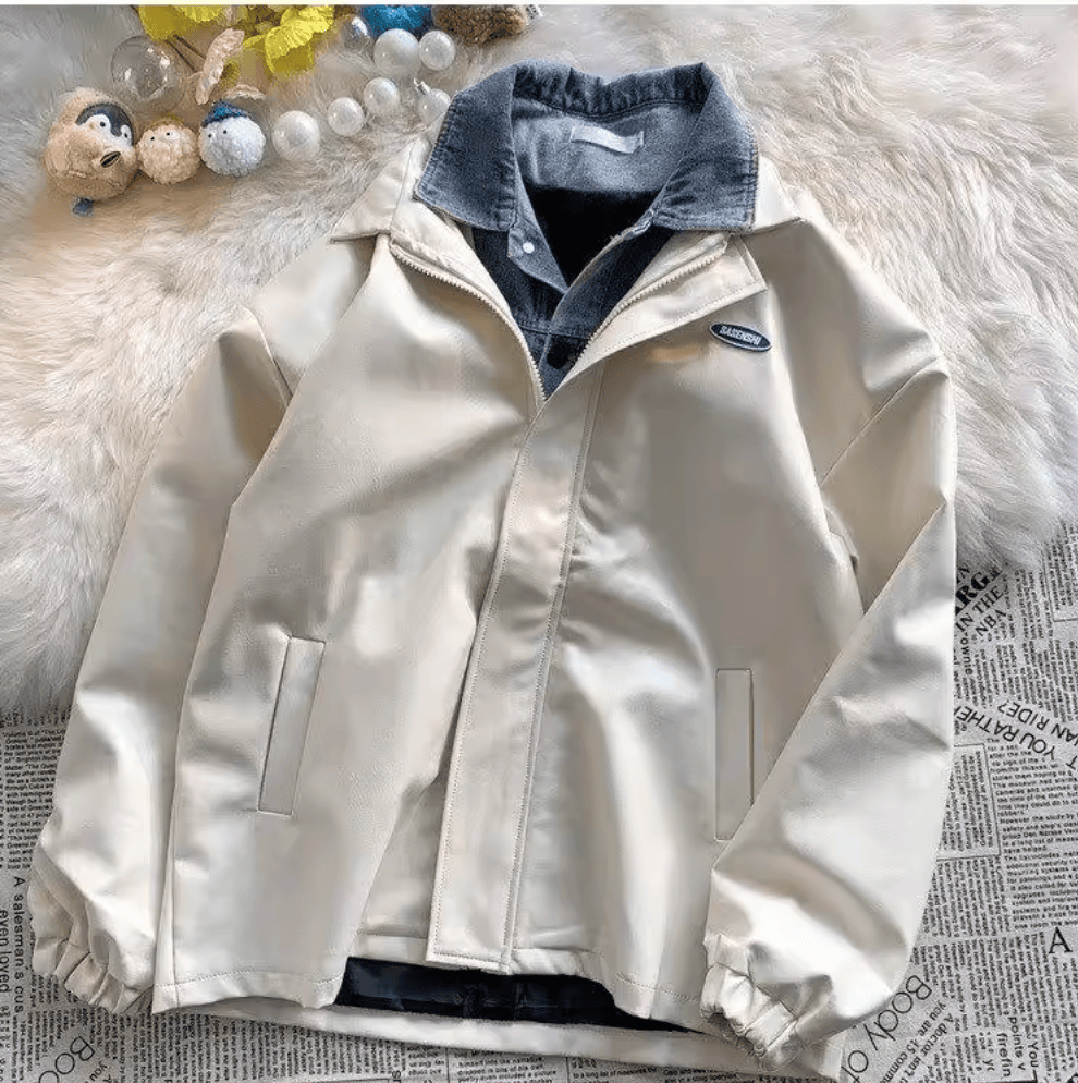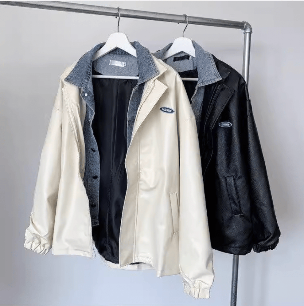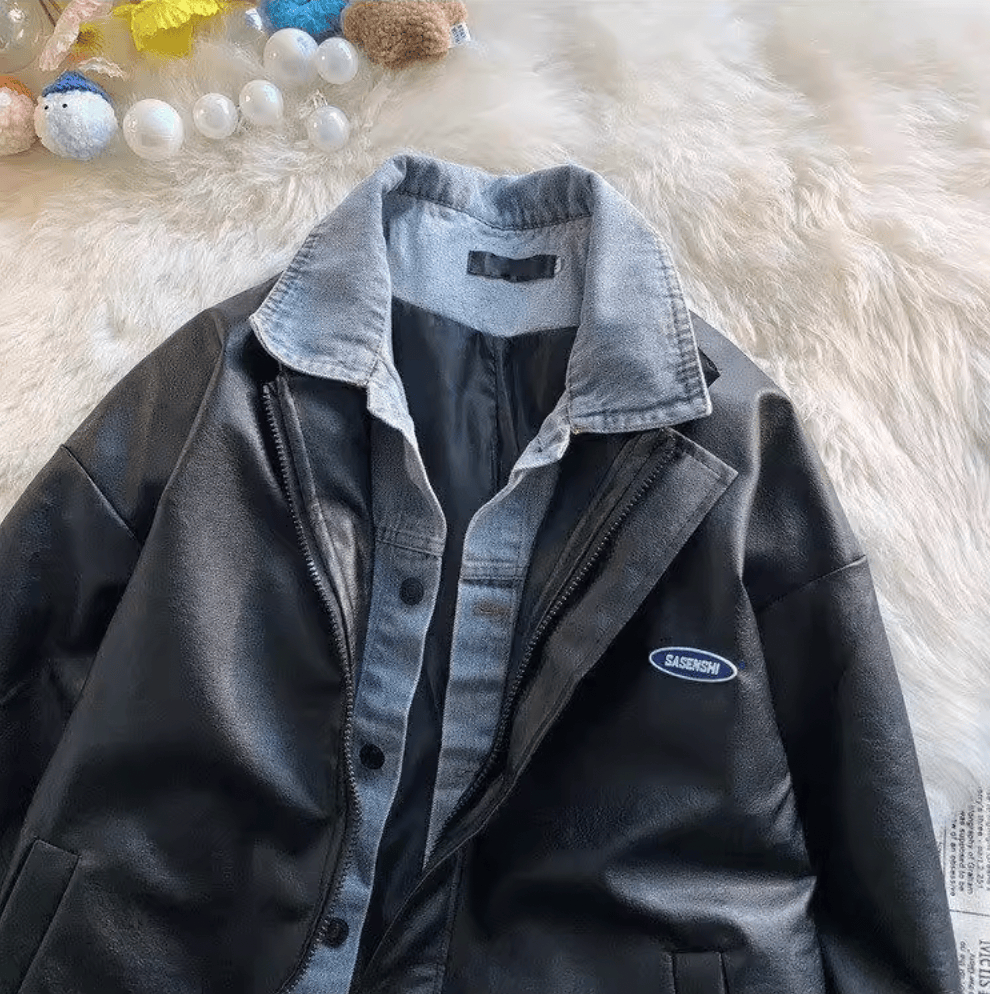 Мужская куртка прямая с эко кожи на молнии оверсайз
