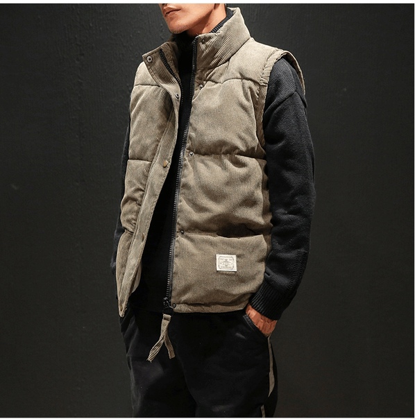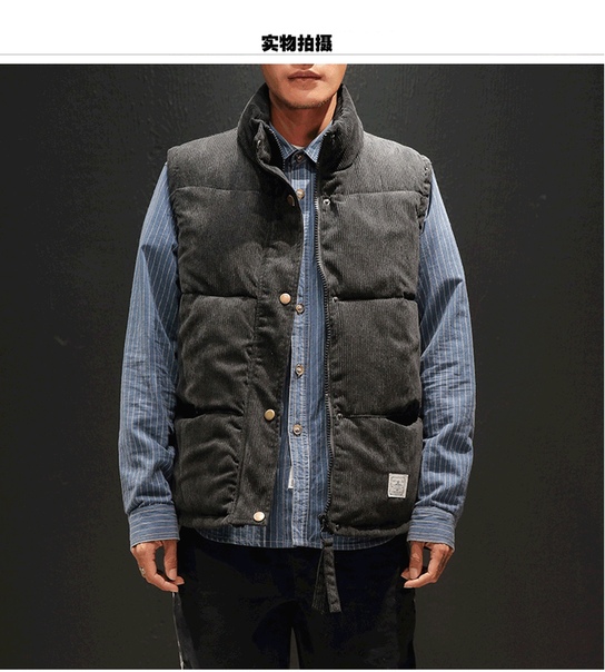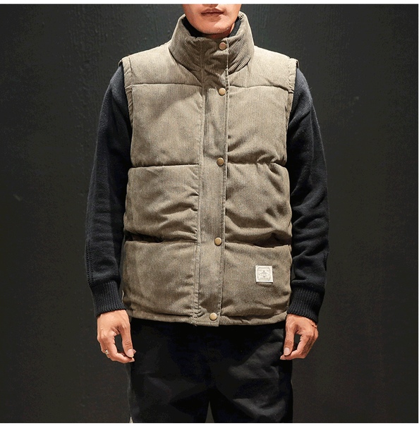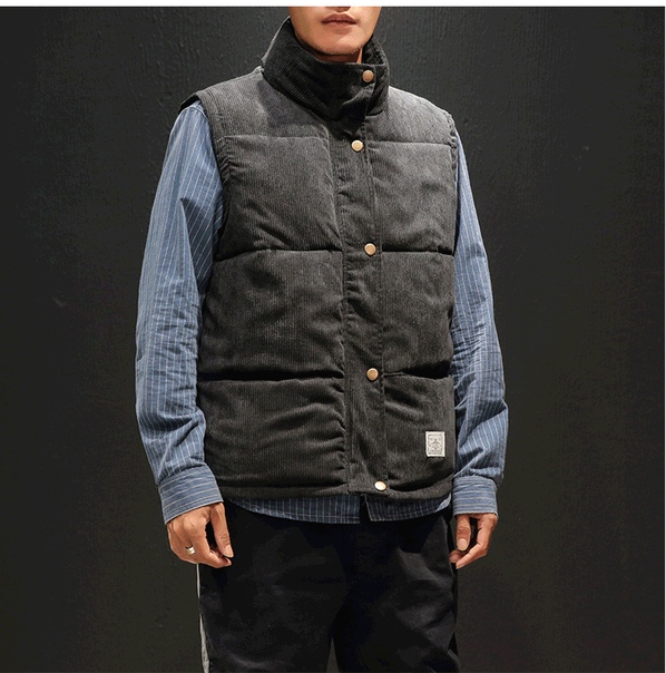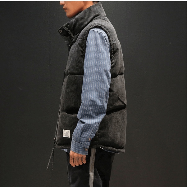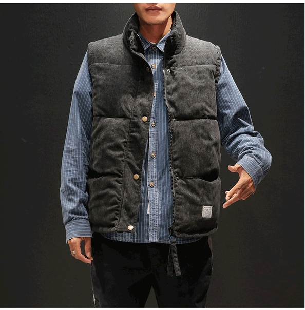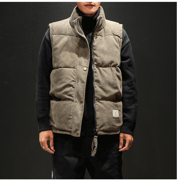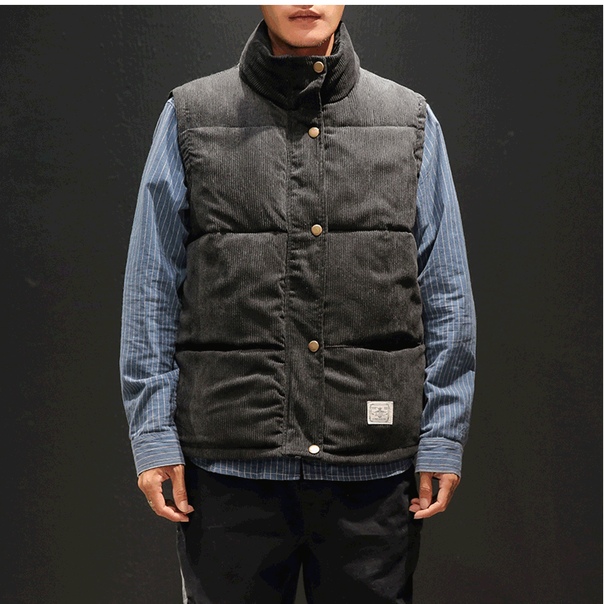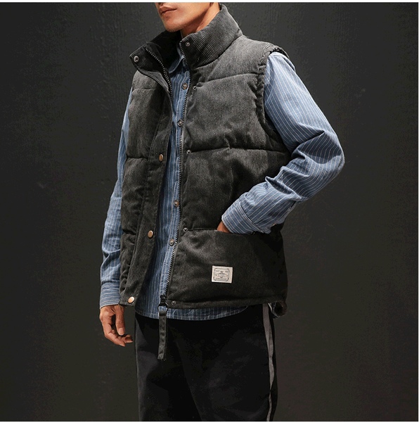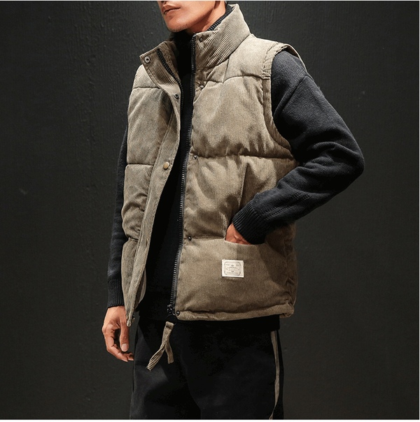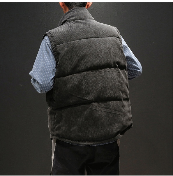 Теплый мужской дутый вельветовый жилет