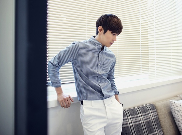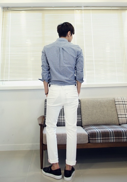 Приталенная мужская рубашка в тонкую полосочку
