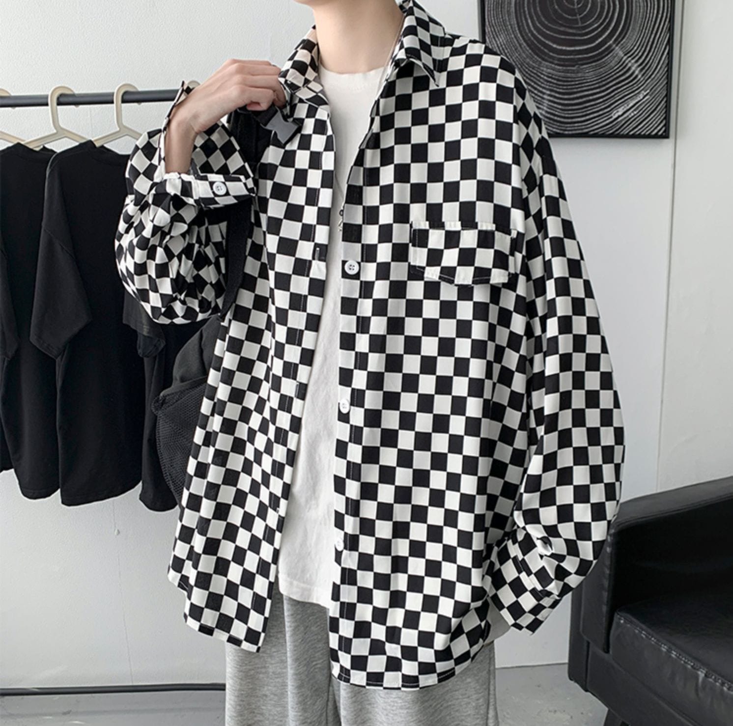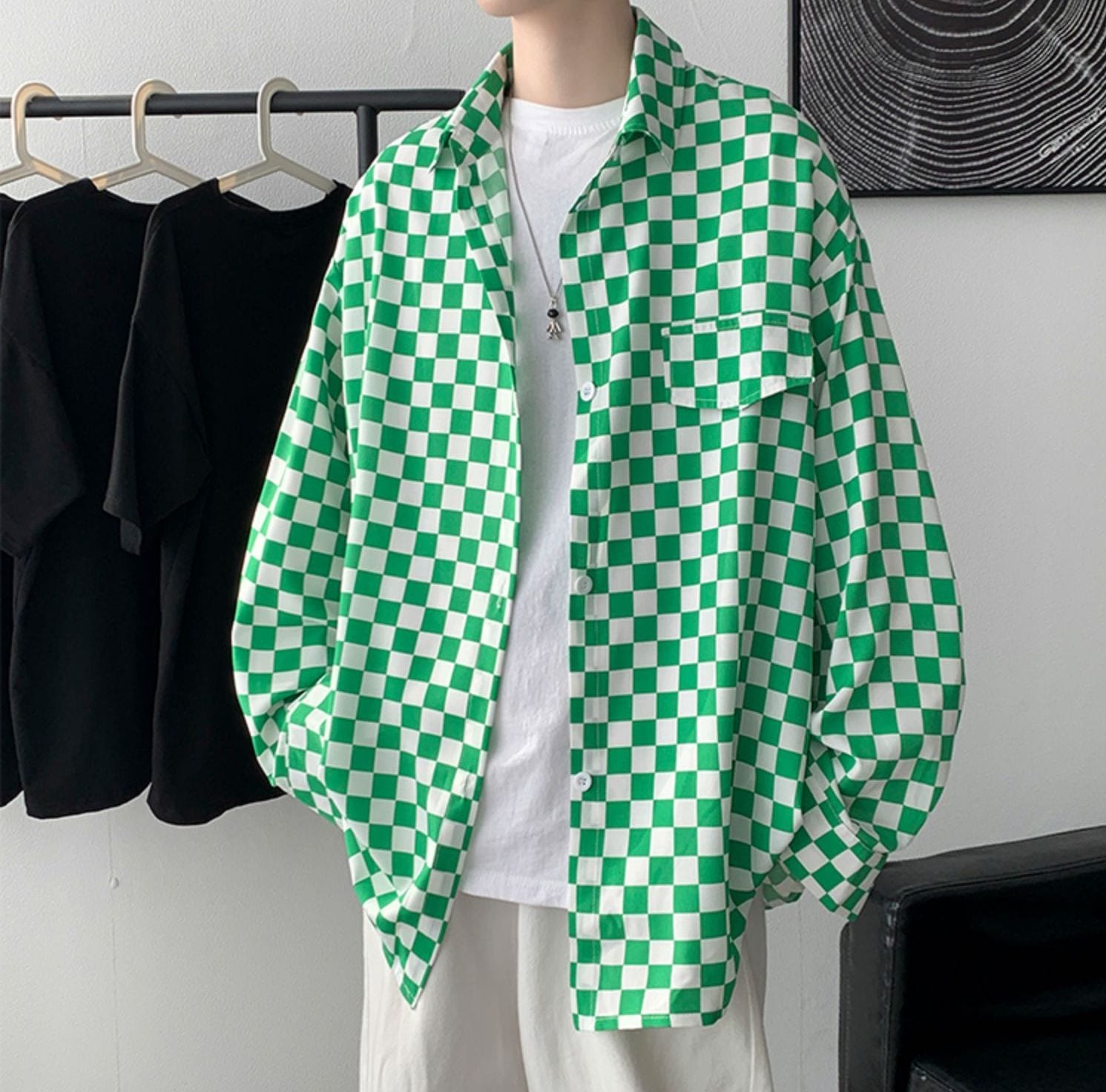 Очень свободная и длинная рубашка с длинными рукавами в клетку
