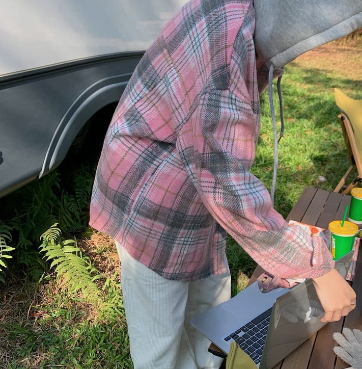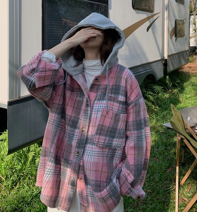 Женская рубашка в клетку с капюшоном