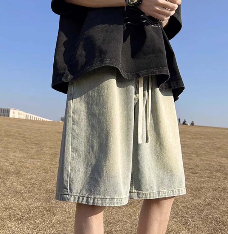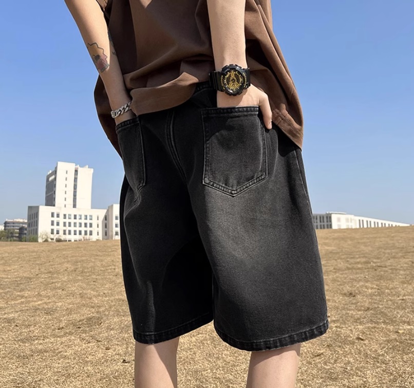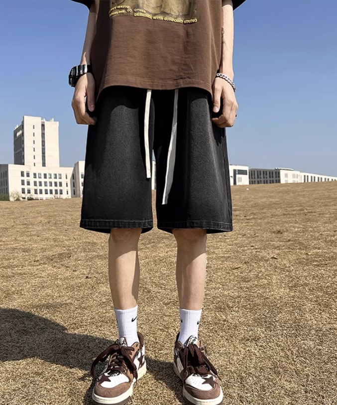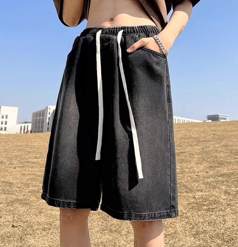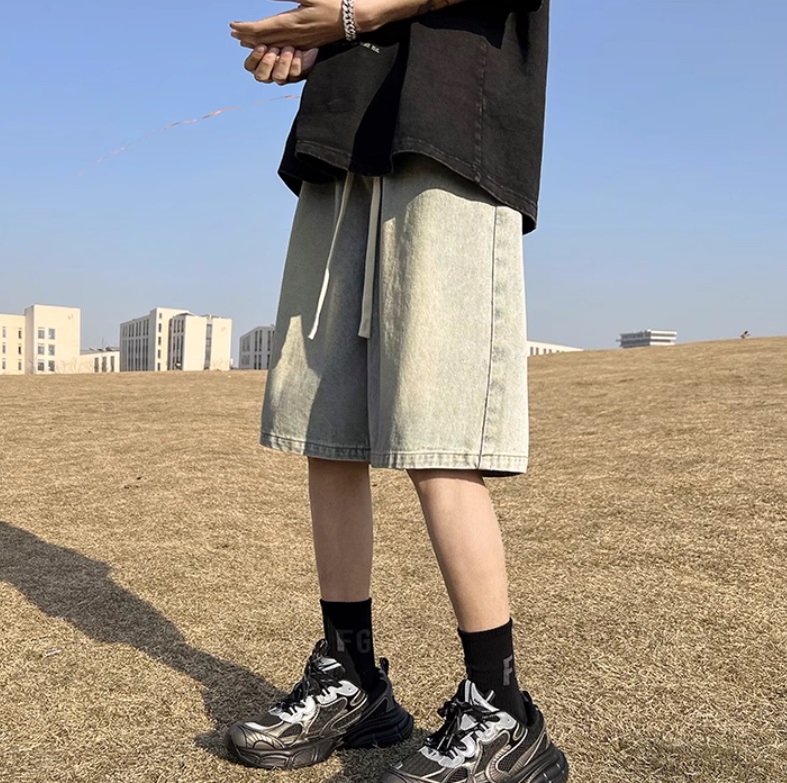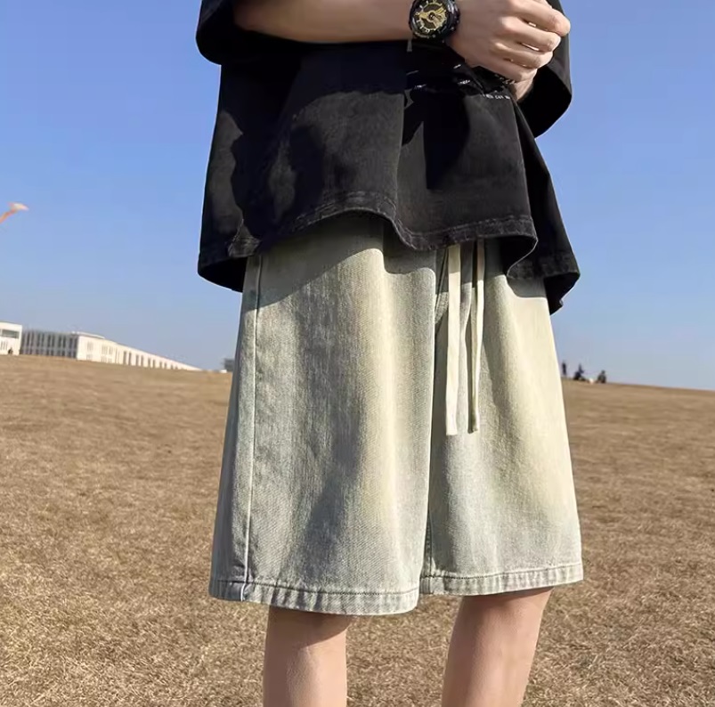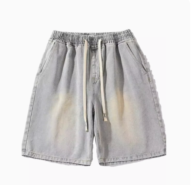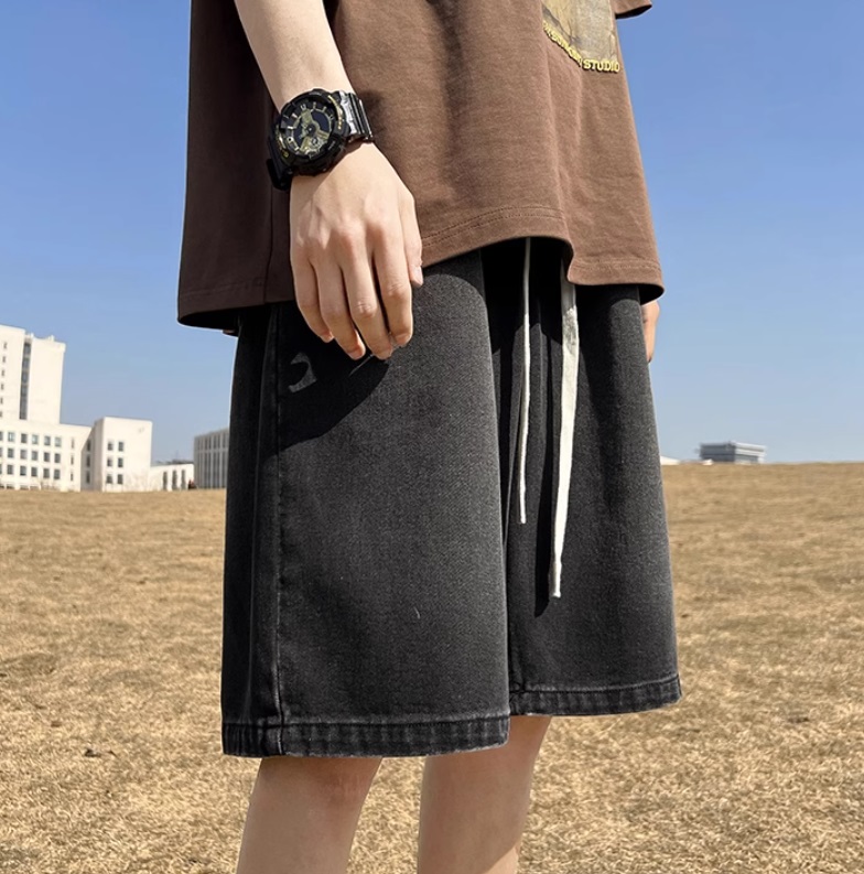Джинсовые шорты мужские свободные прямые с резинкой