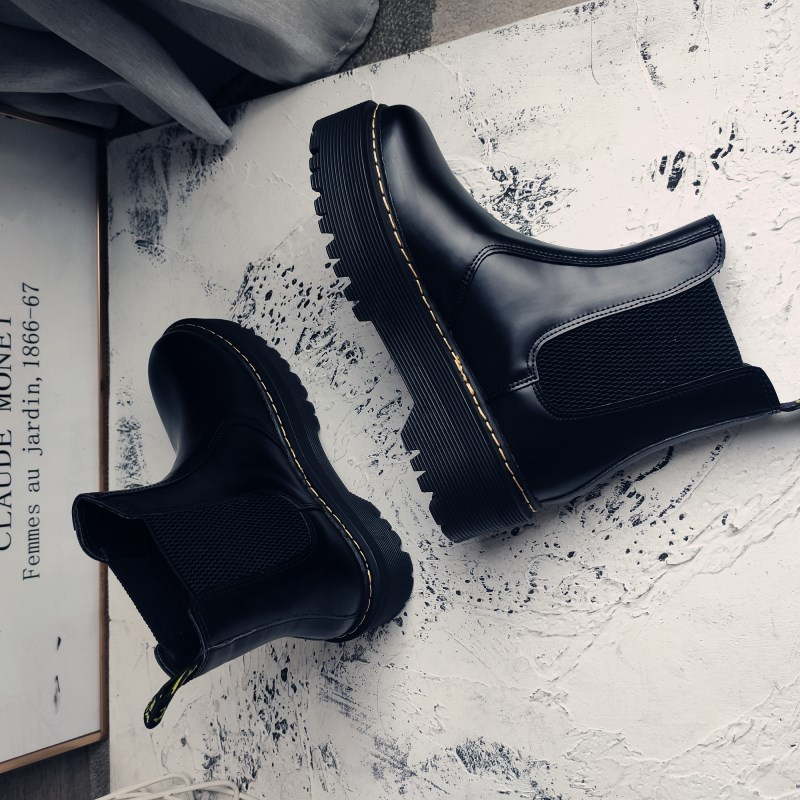 Классические черные женские челси, отличительной особенностью модели, то что она идёт на завышенной подошве.