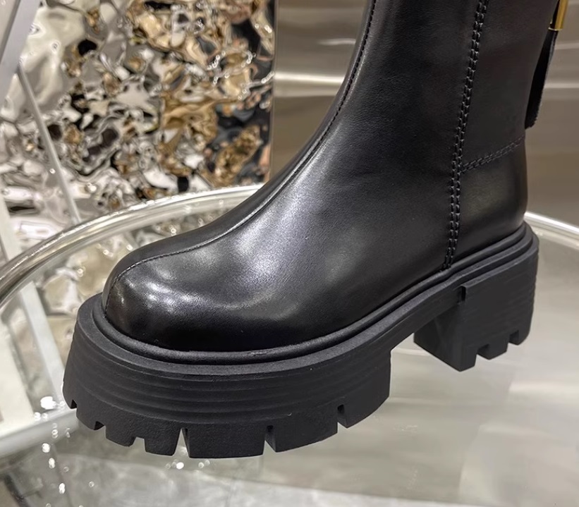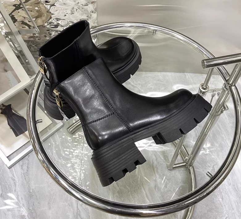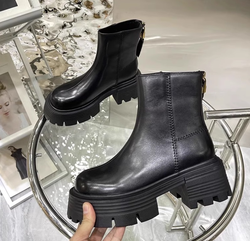Женские полу сапоги без шнурков на высокой подошве