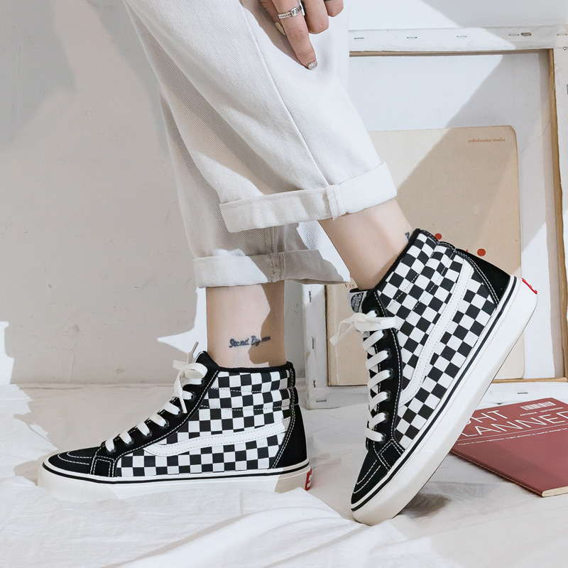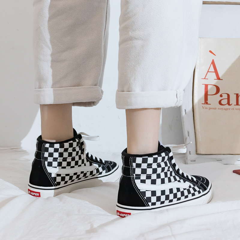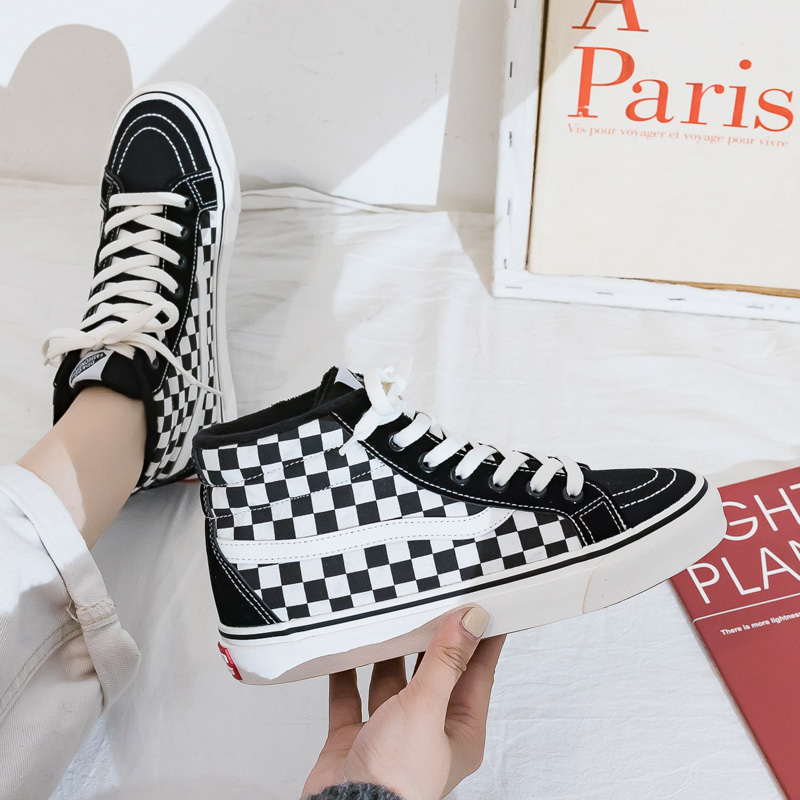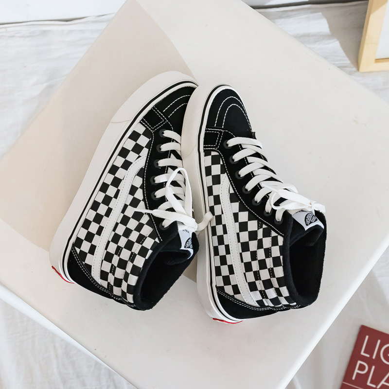 Высокие зимние кеды в клетку женские