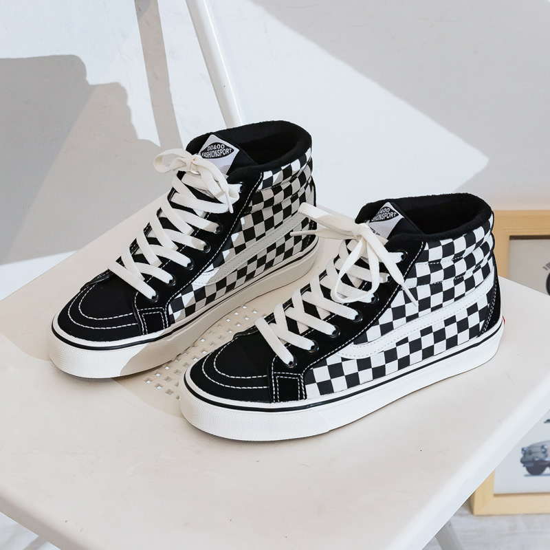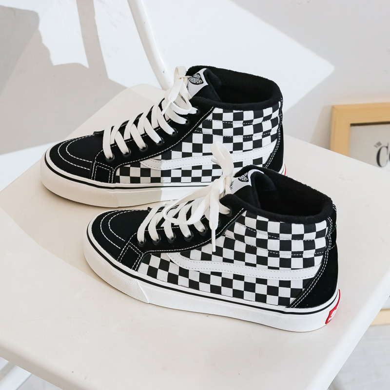 Клетчатые высокие кеды с мехом