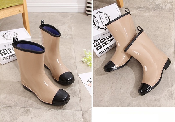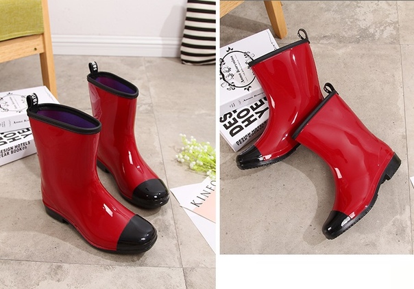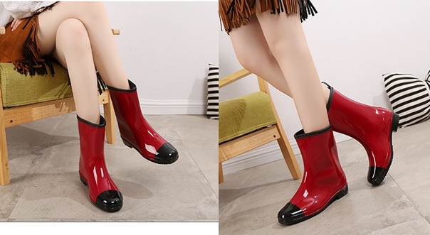 Лаковые резиновые полу ботинки с черным носом
