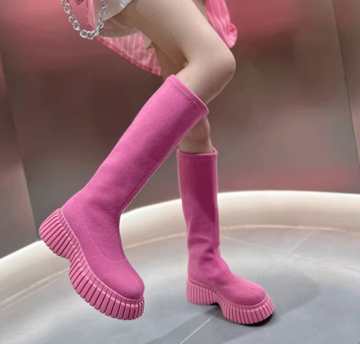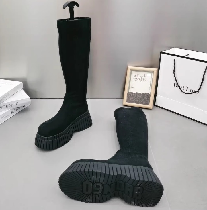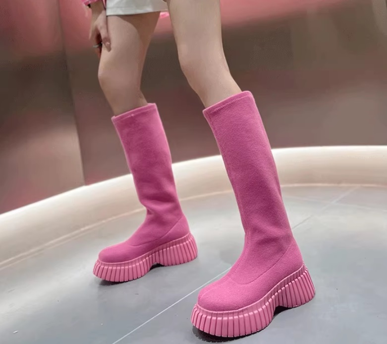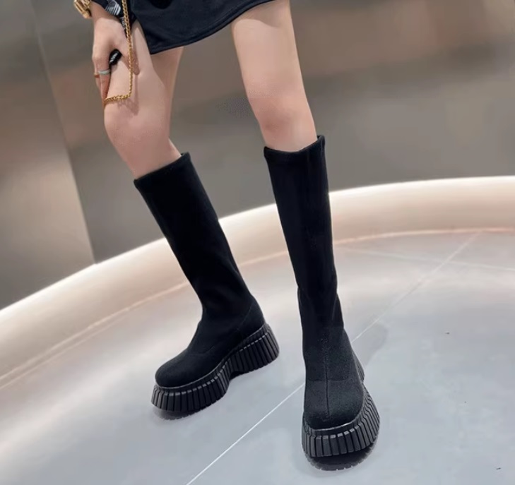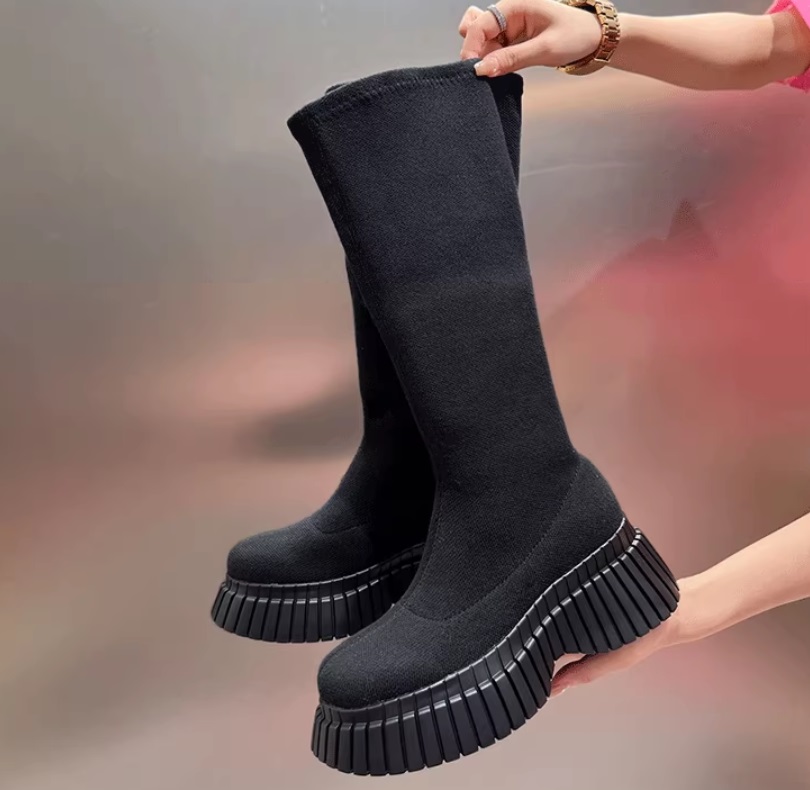Высокие узкие эластичные ботинки-гольфы на ребристой толстой подошве