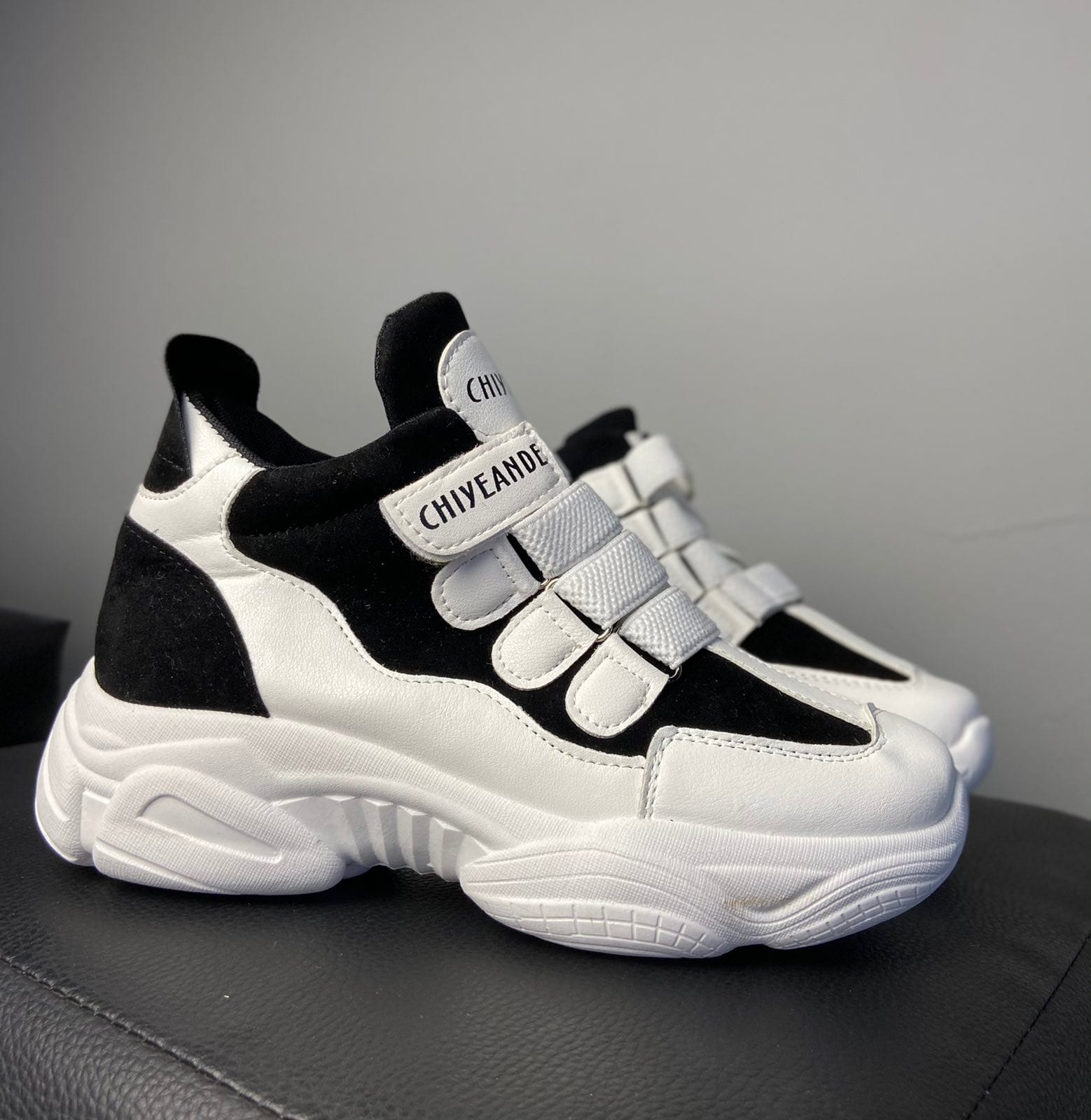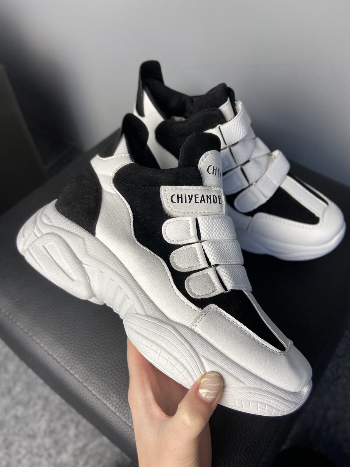 Высокие кроссовки сникерсы с танкеткой и липучками