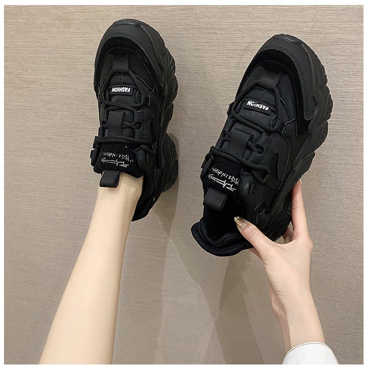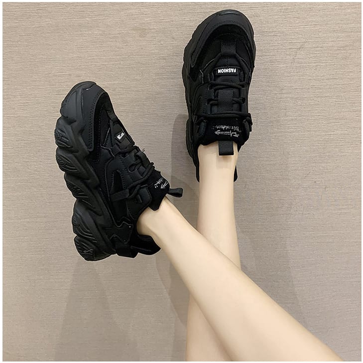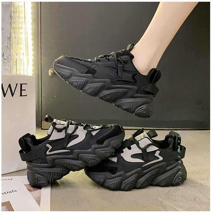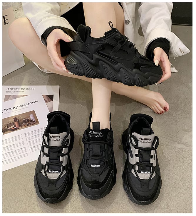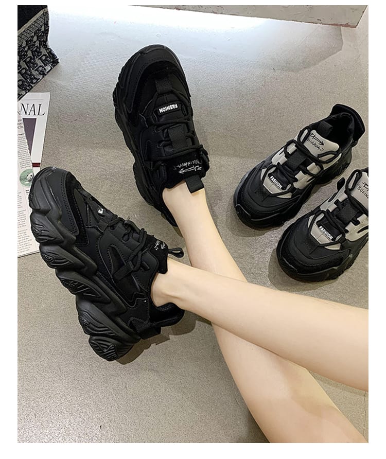 Женские черные масивные кроссовки на грубой подошве