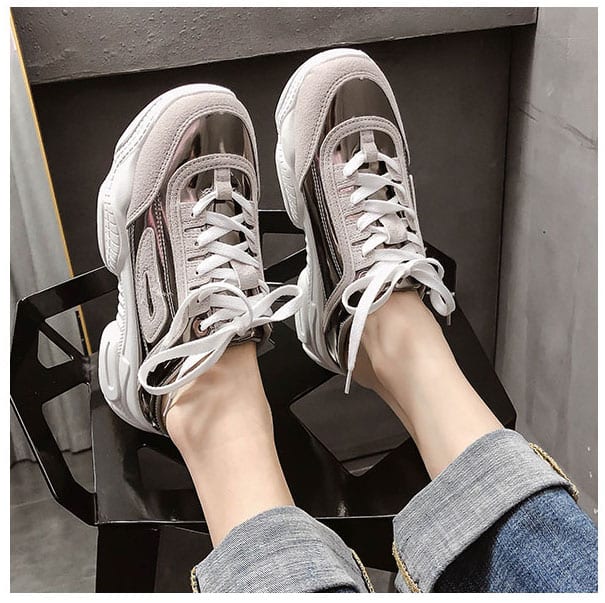 Женские кроссовки с низким задником с лаковыми вставками