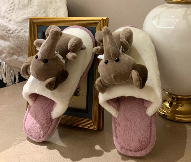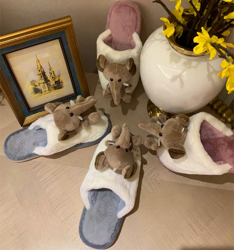 Милые женские комнатные тапочки с объемной игрушкой слоника