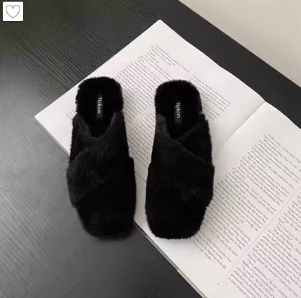 Женские пушистые домашние тапочки с переплетом