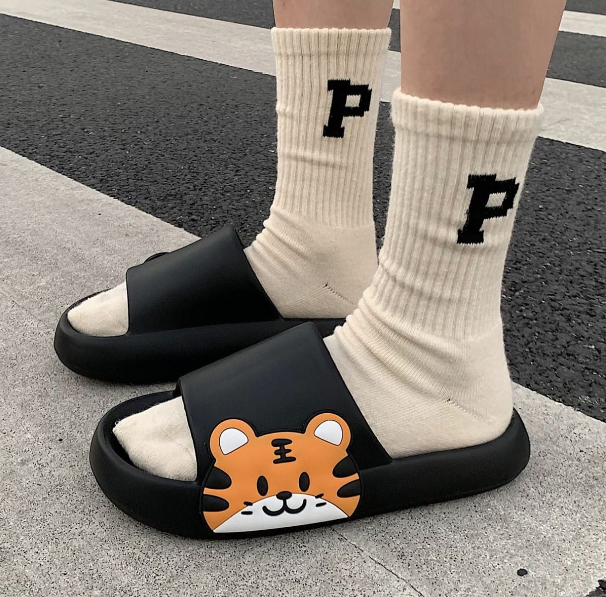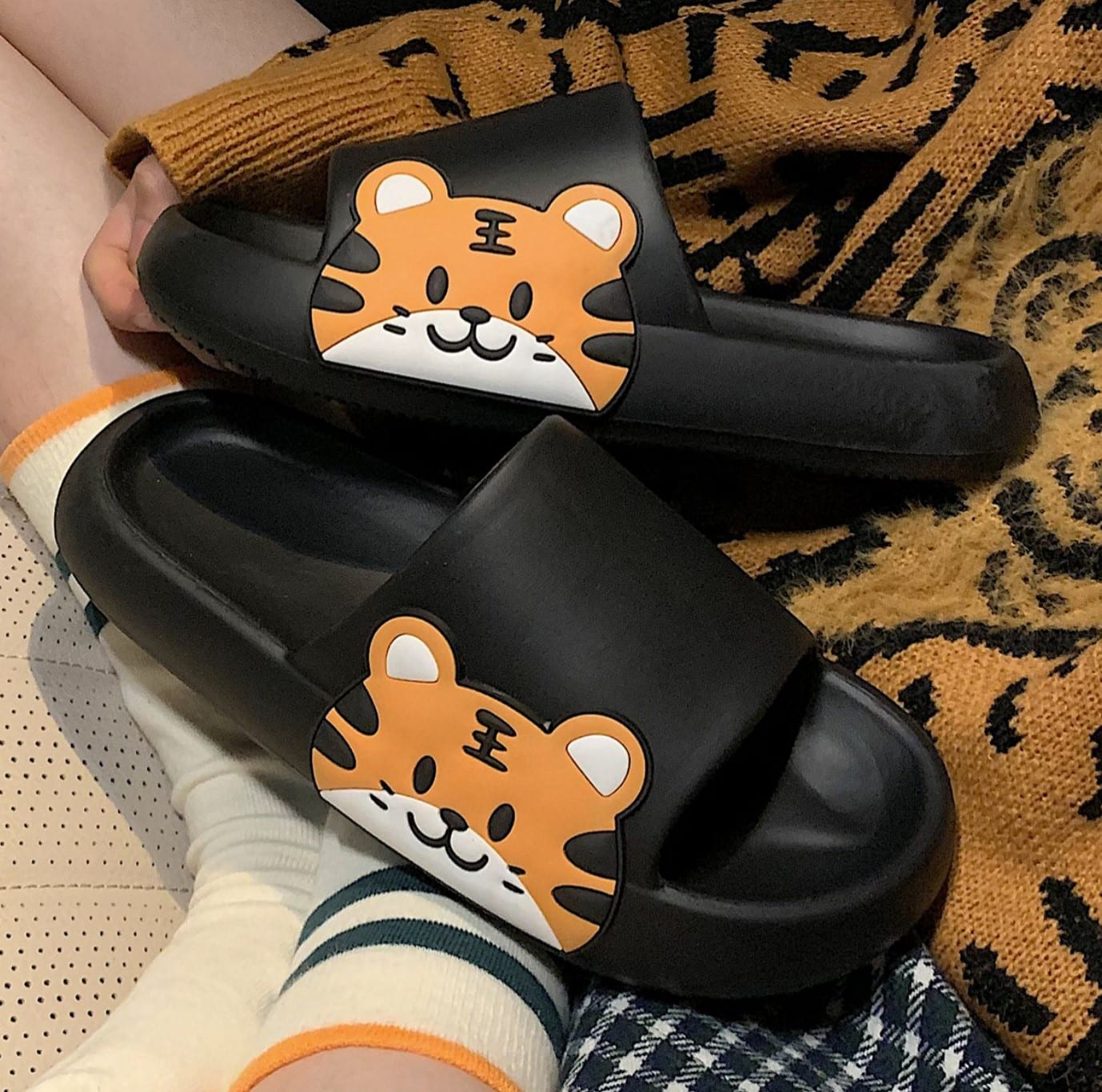 Летние тапочки с милым маленьким тиграми на толстой подошве