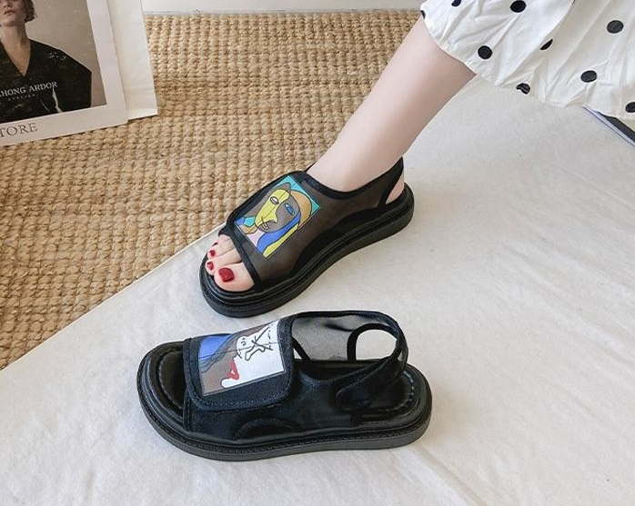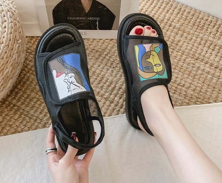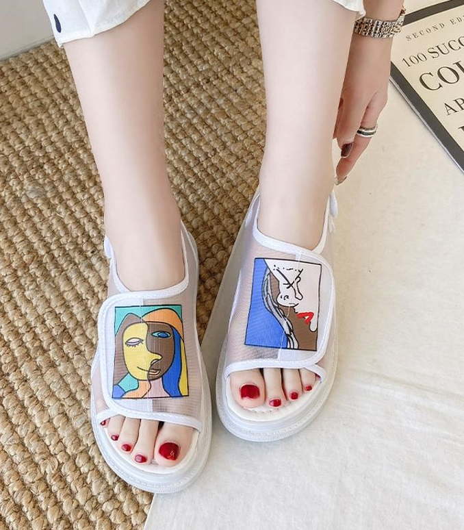 Женские сандали на липучках с рисунком