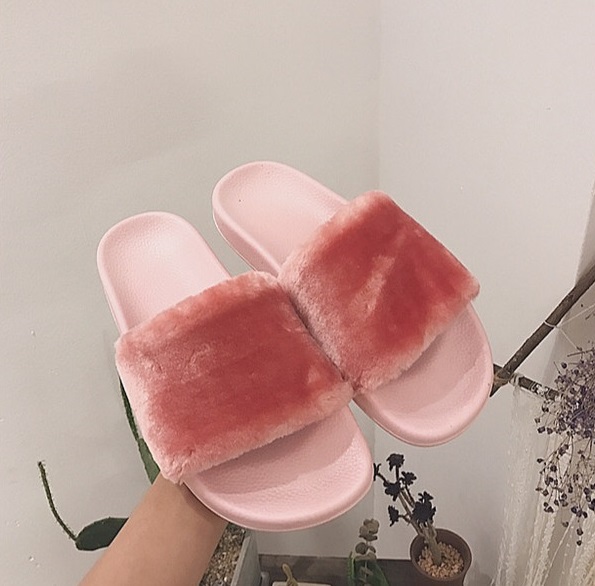 Женские тапочки с пышным мехом