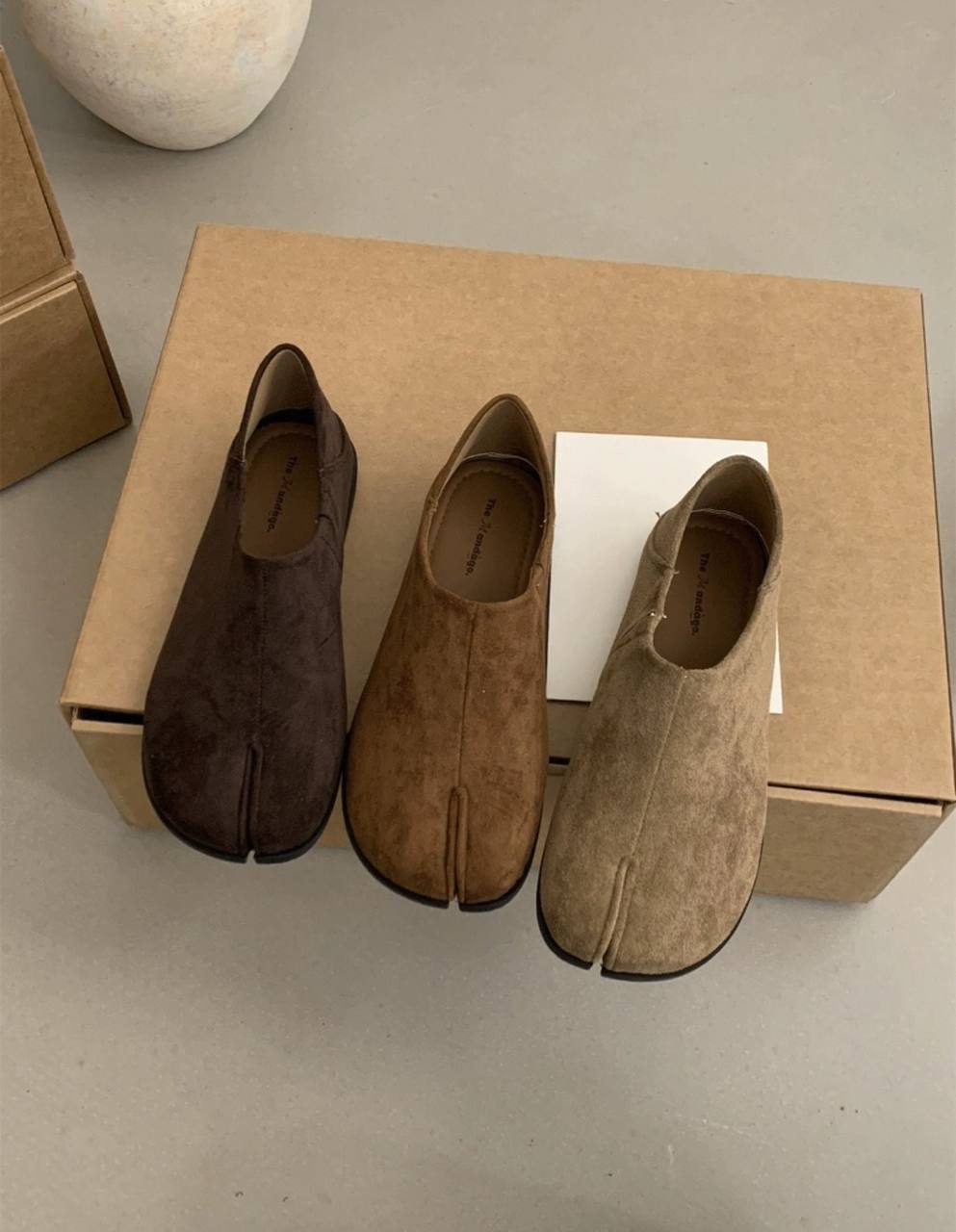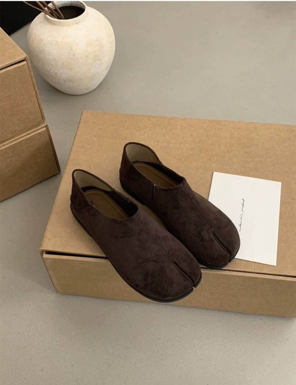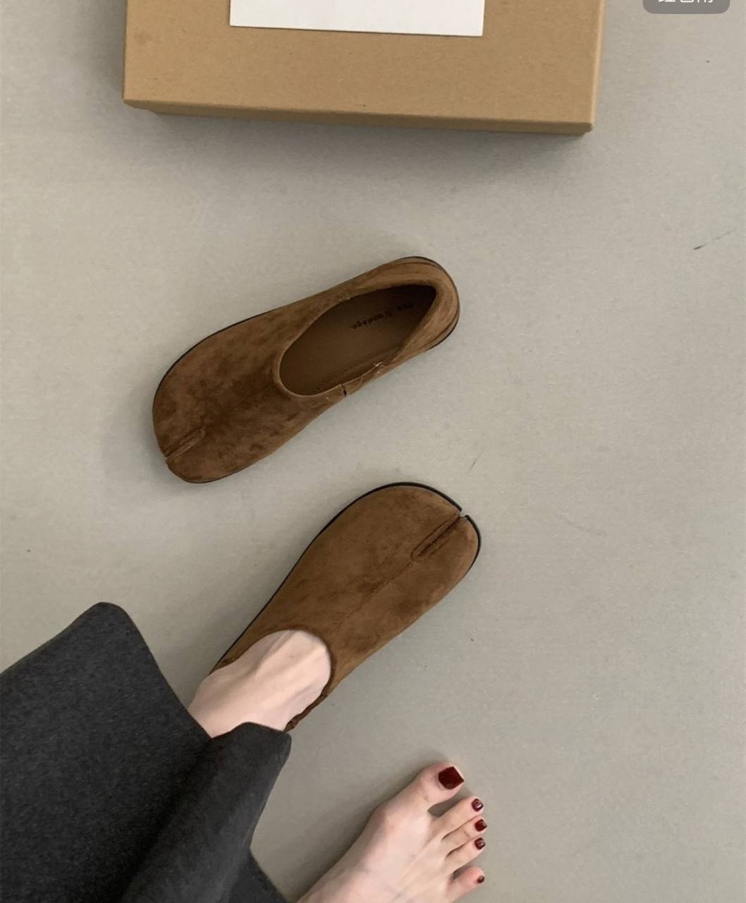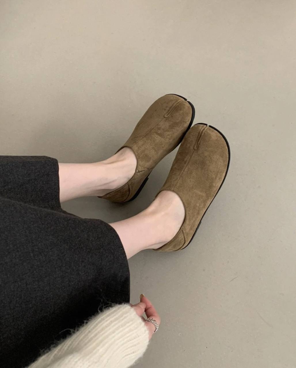 Качественные и необычные женские слипоны таби из натуральной замши - с раздвоенным носком