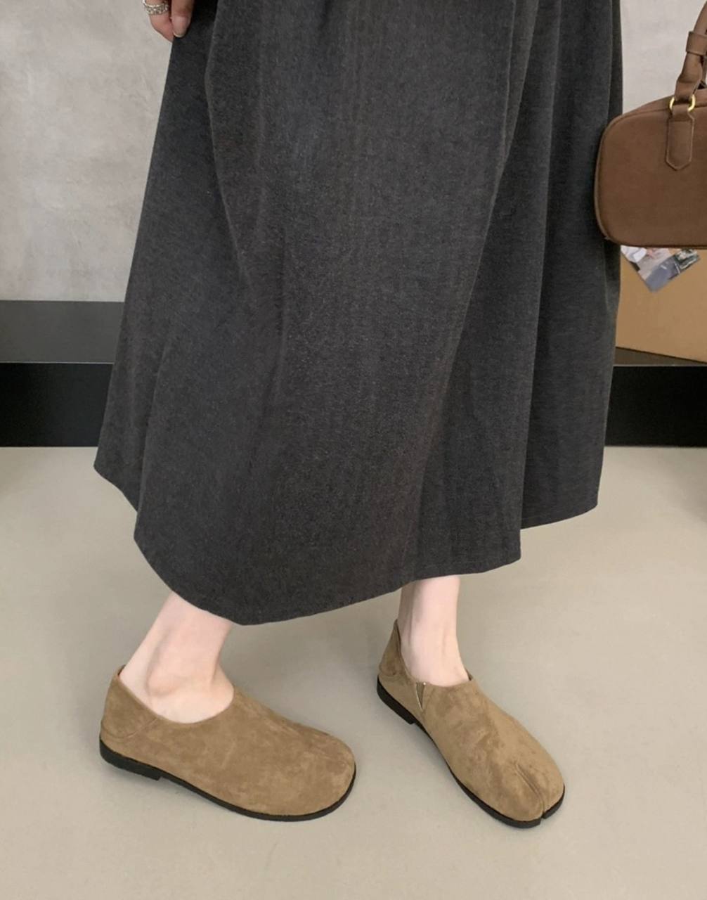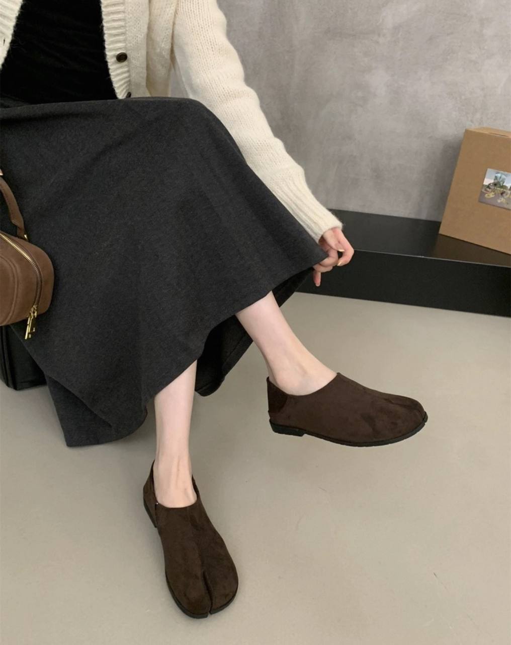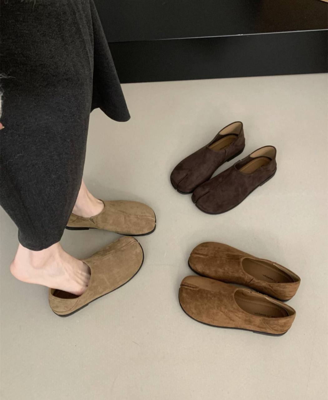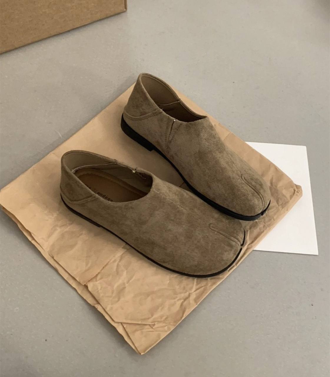 Качественные и необычные женские слипоны таби из натуральной замши - с раздвоенным носком