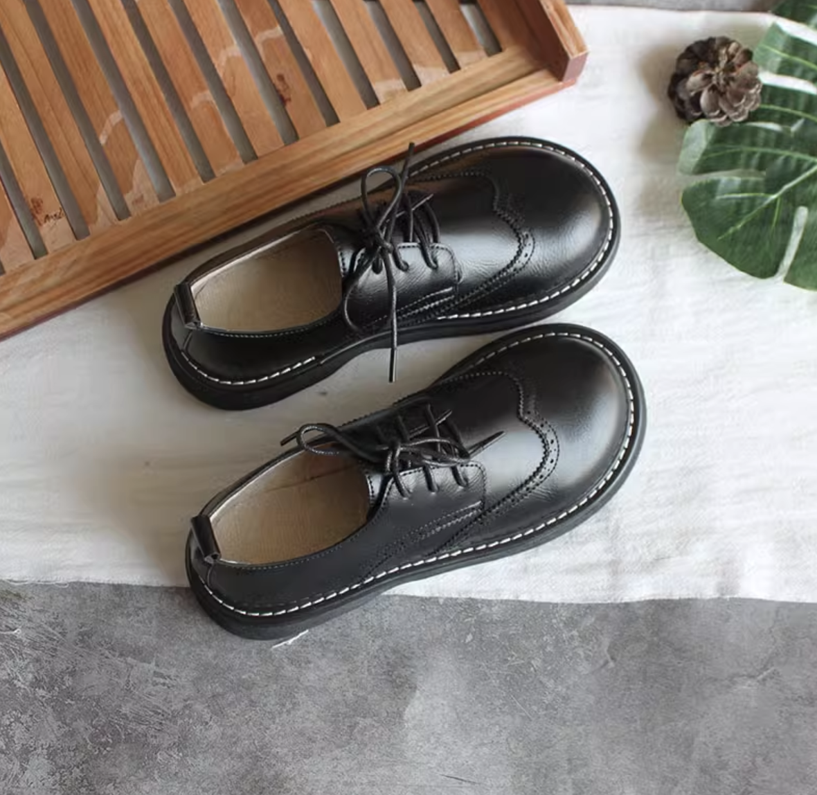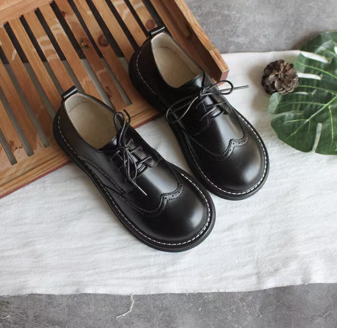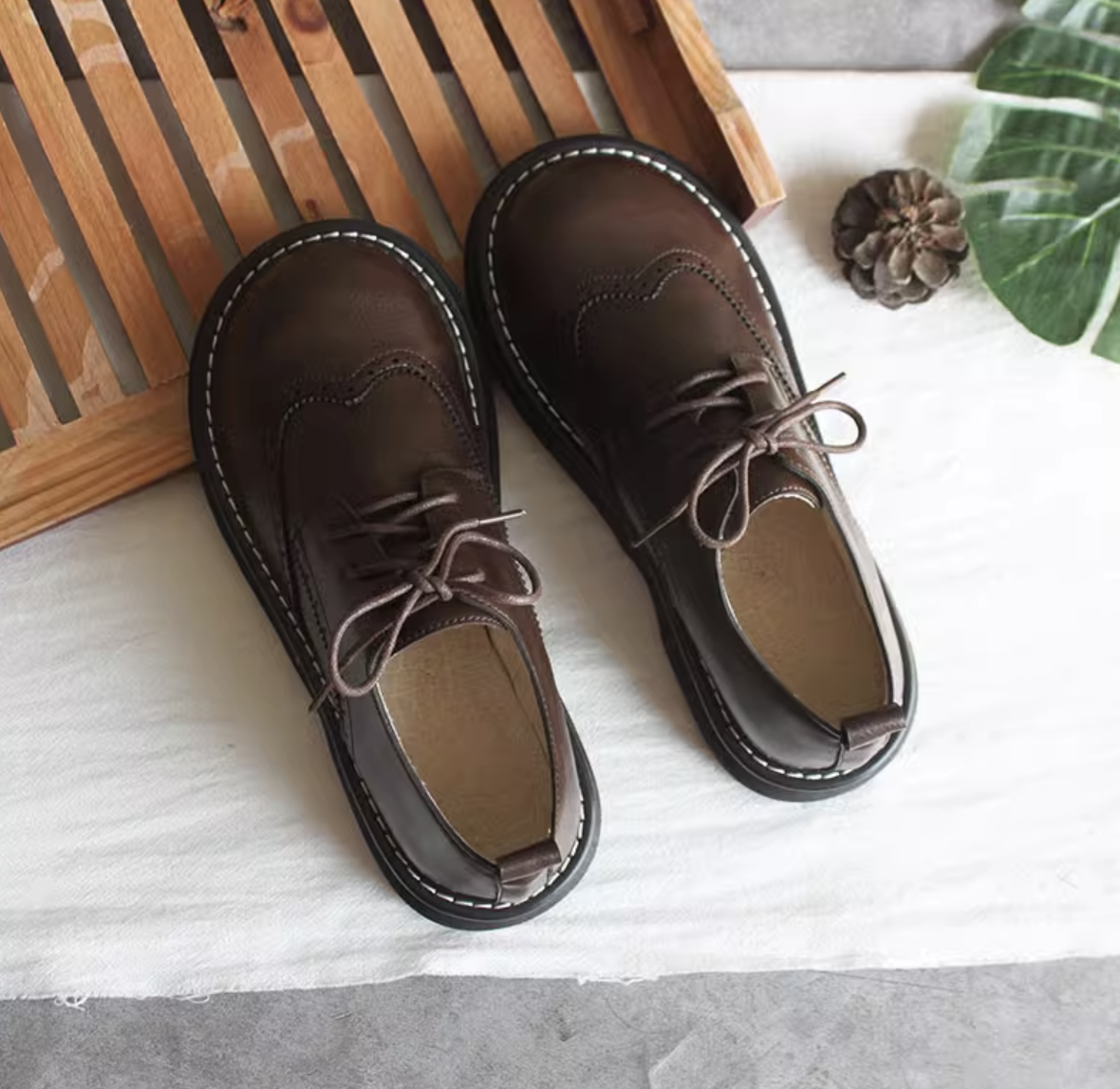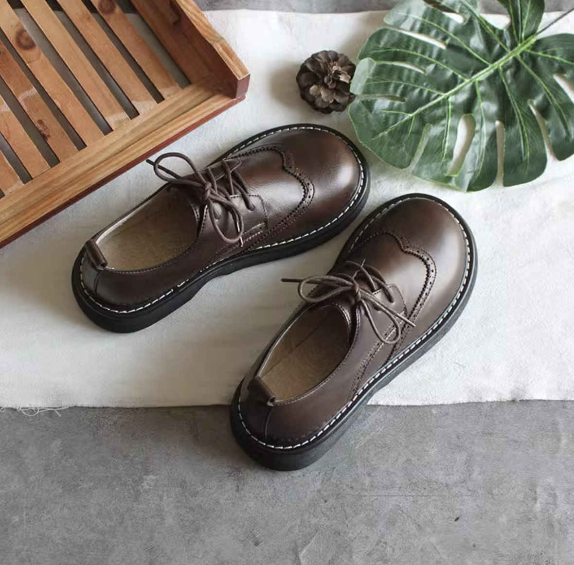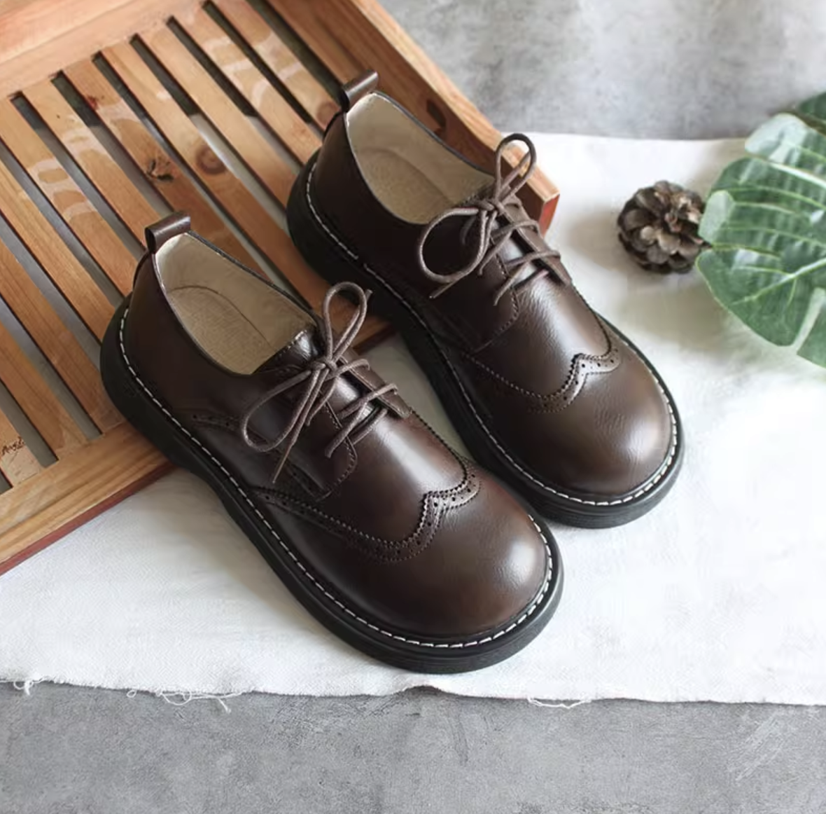 Женские стильные броги в ретро стиле с большим круглым носом