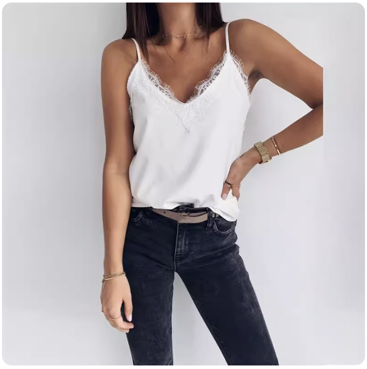 Женская майка с кружевом на бретелях