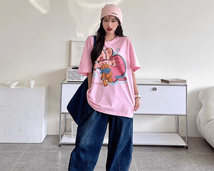 Свободная футболка с большим рукавом и класным принтом