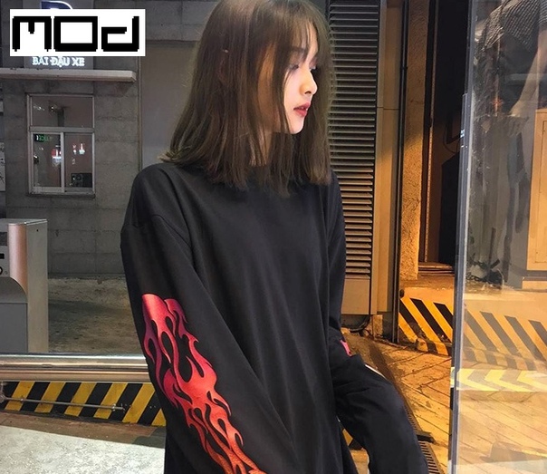 Легкая черная кофта лонгслив с огнем на рукавах