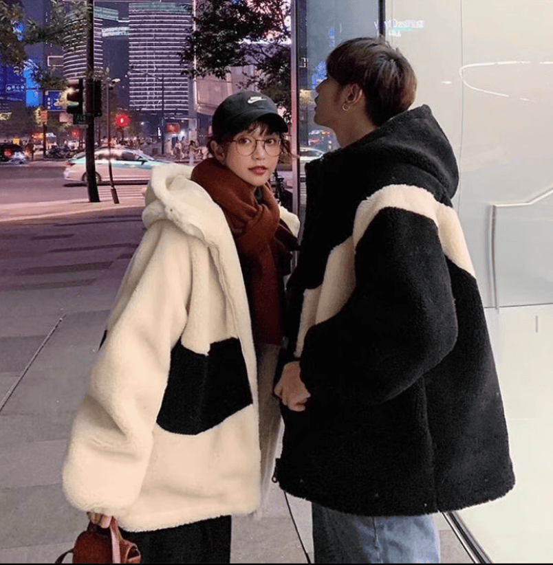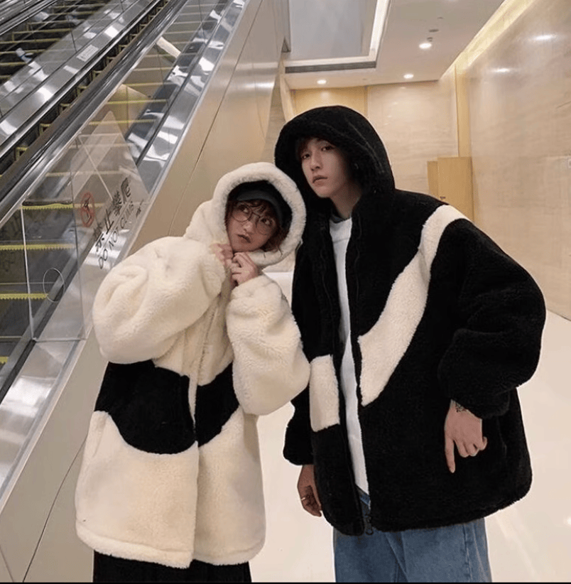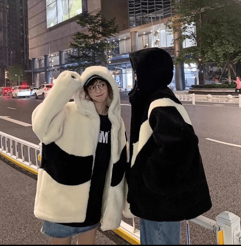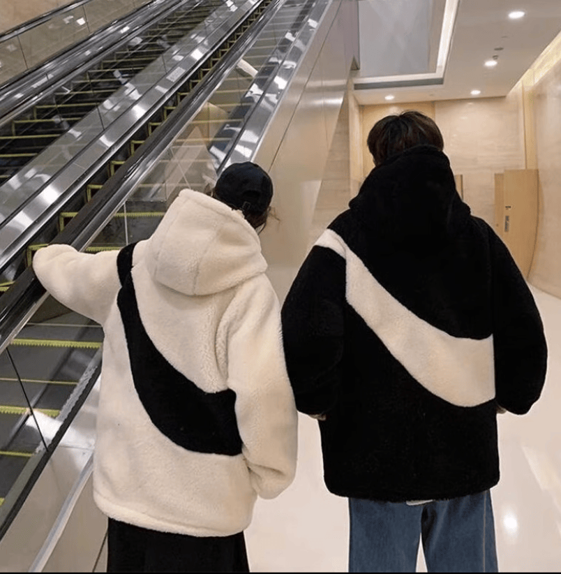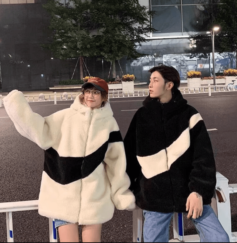 Большая плюшевая куртка с замком и полоской