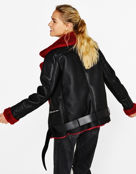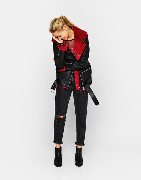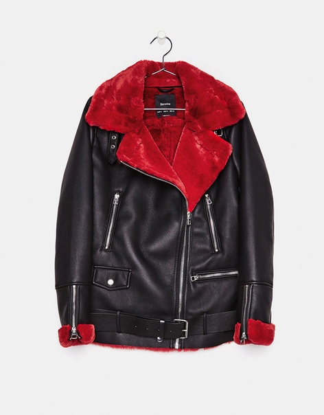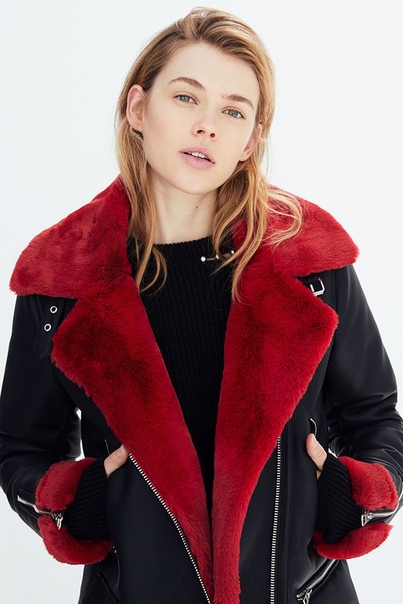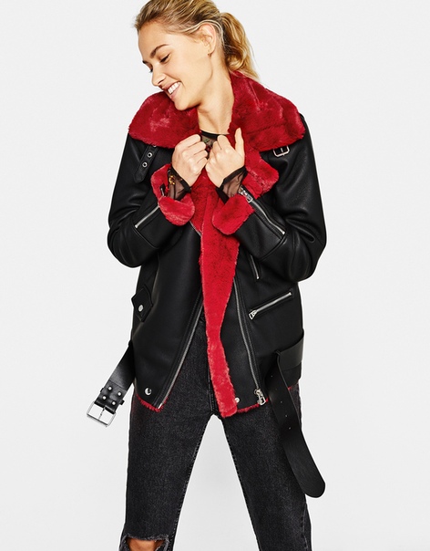 Крутая женская косуха с красным мехом