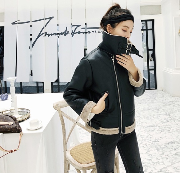 Женская куртка с воротником стойка + мех
