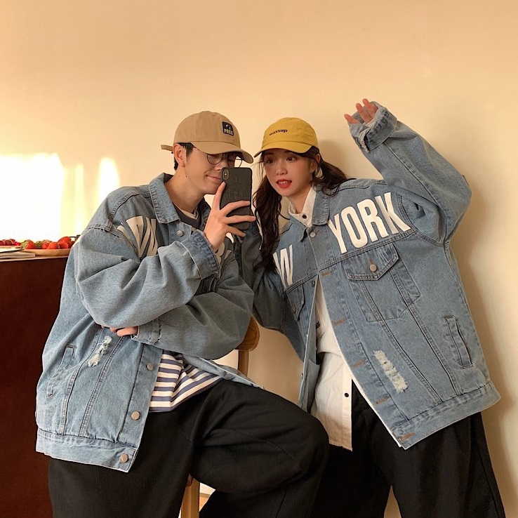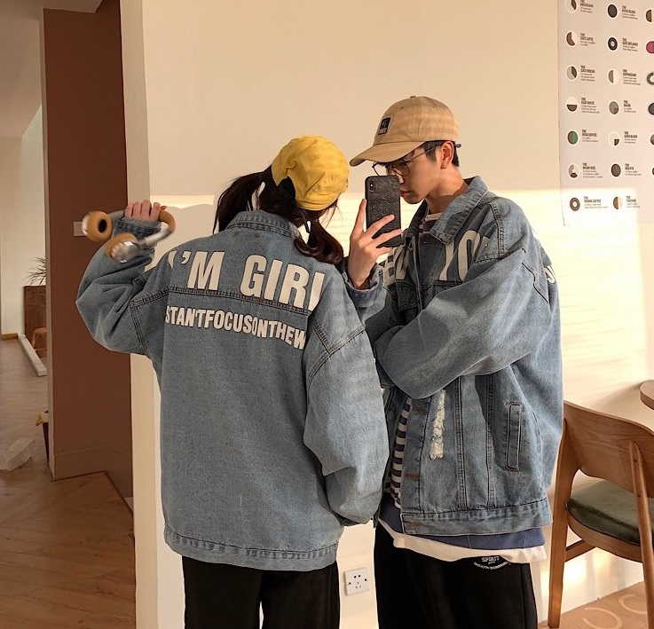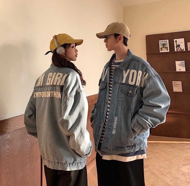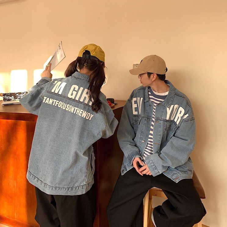 Джинсовая куртка для девушек и парней с большой надписью
