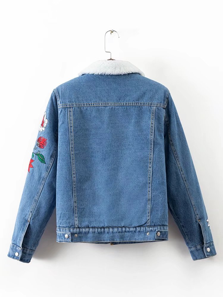 Куртка джинсовая на утеплителе вполне может конкурировать с пуховиками или пальто и даже заменить их в повседневном использовании. Вышивка на рукавах непременно привлечет внимание окружающих и создаст необычный образ.