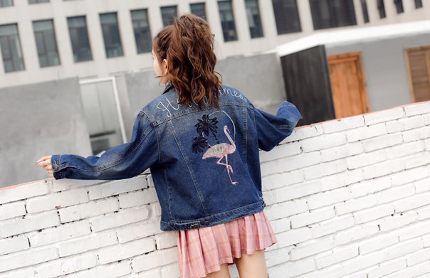 Джинсовая куртка с фламинго
