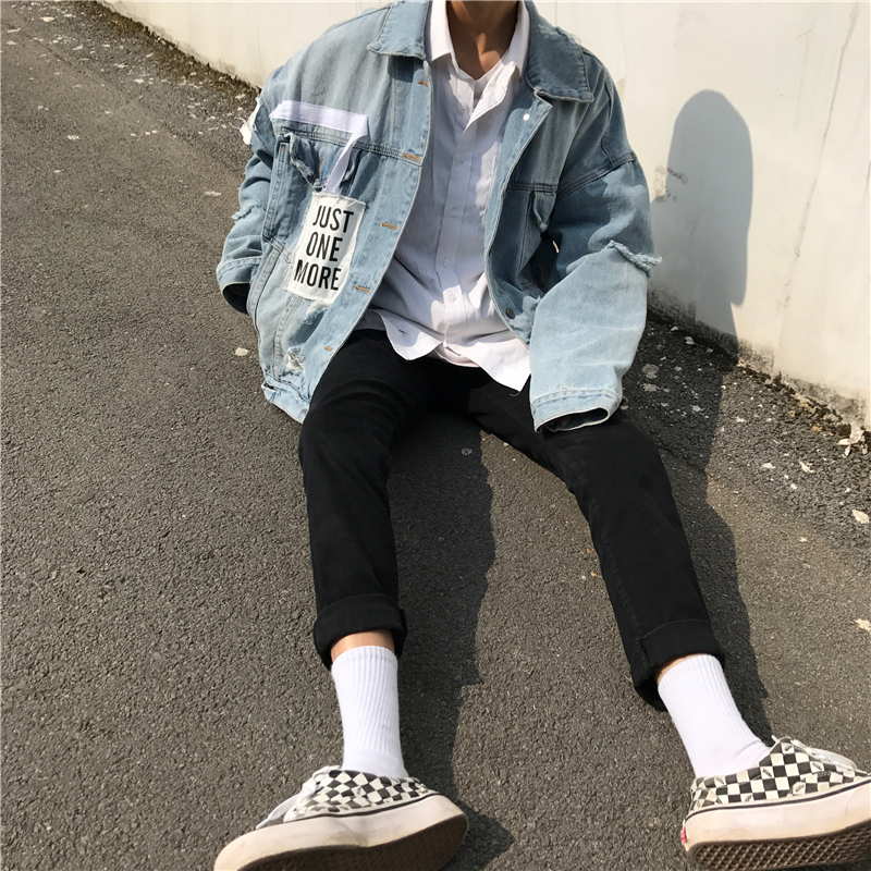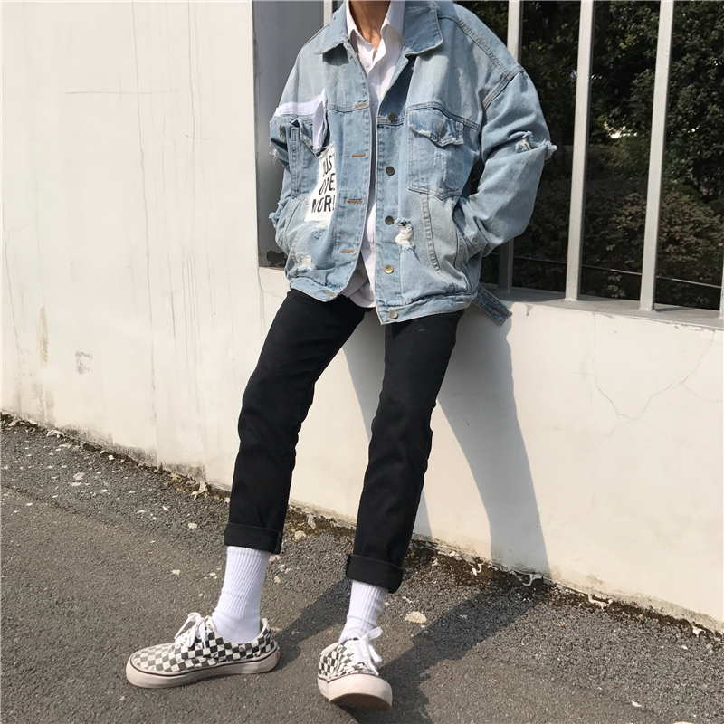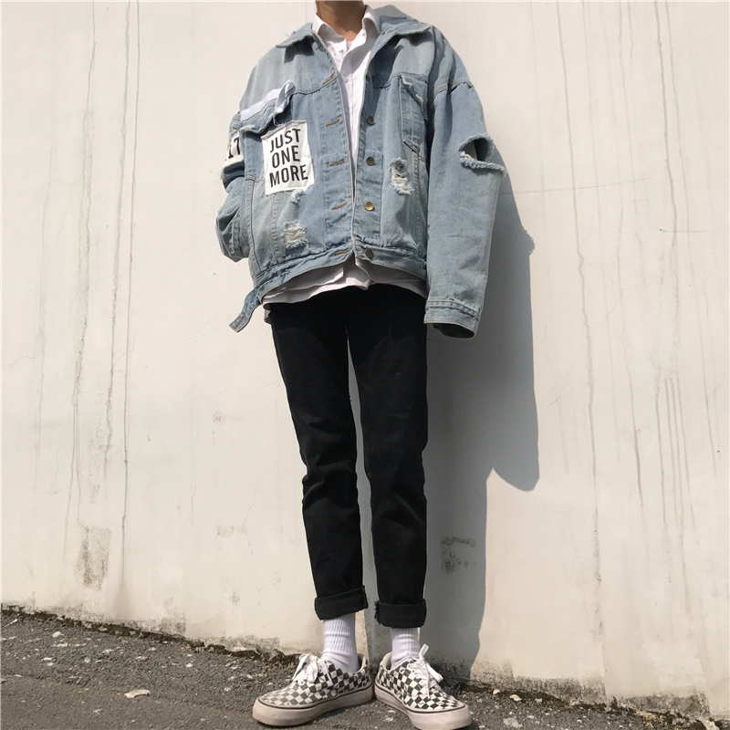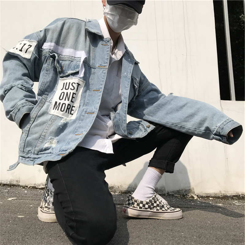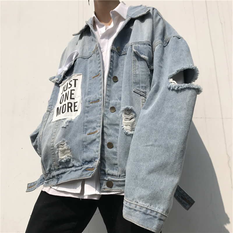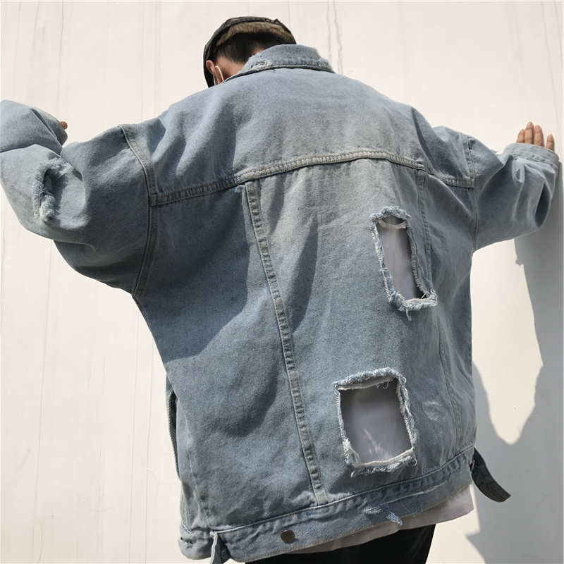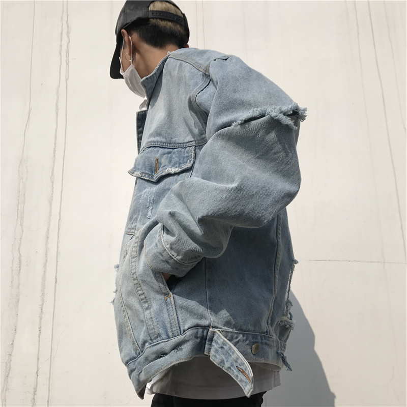 Оверсайз куртка джинсовая с рваными рукавами