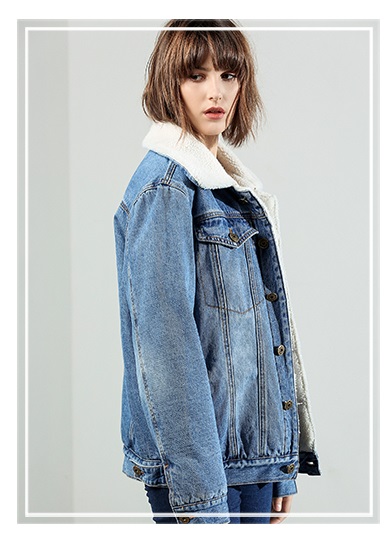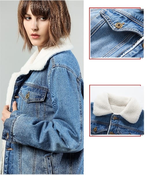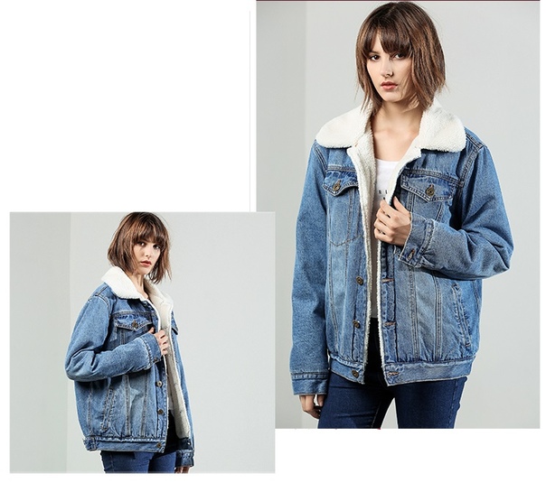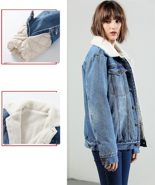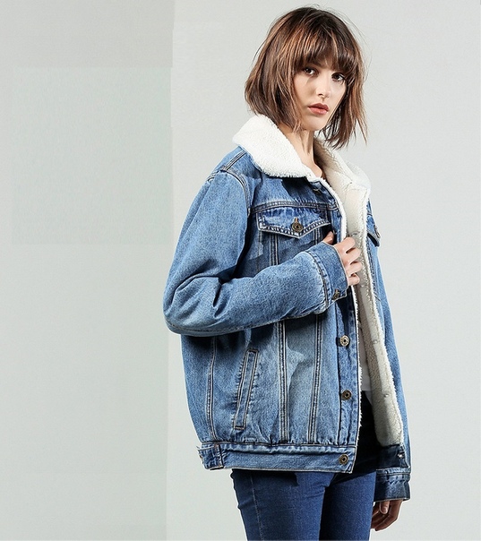 Свободная синяя джинсовая куртка с мехом для девушки