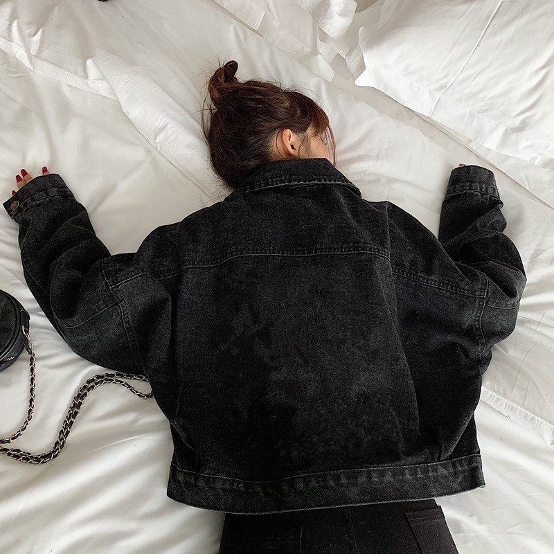 Женская джинсовка черного цвета оверсайз